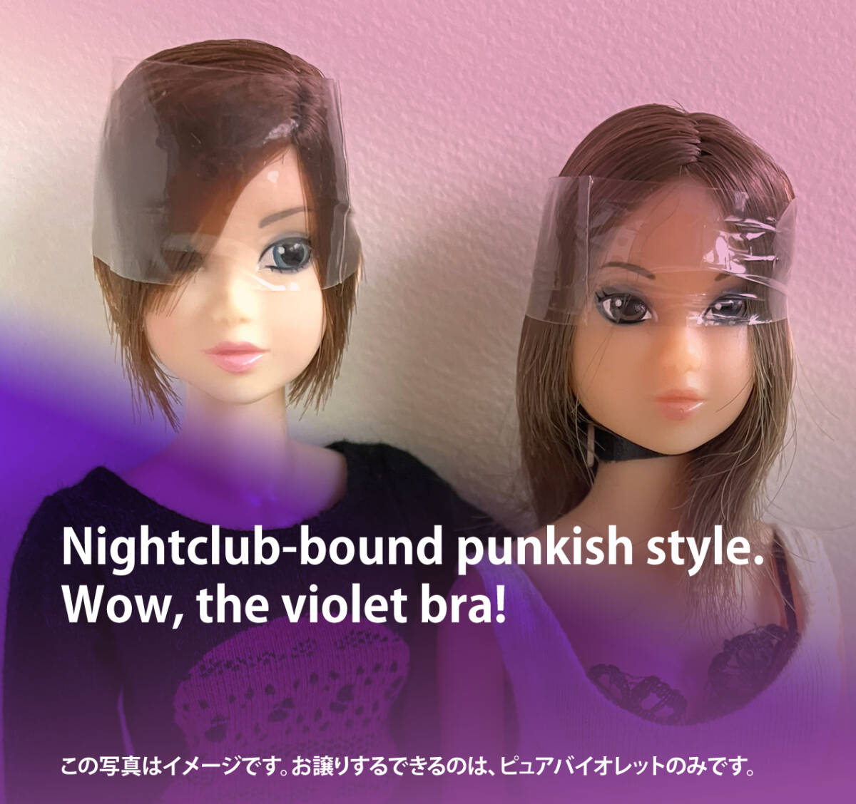 例にもれず、パンクロックファッションが好きだったので、発売後即完売のこの子を、何とか手に入れた「ピュアバイオレット」でしたが、かっこ良すぎて触ることが出きず、ずっと元のお洋服のまま、箱入り娘となっていました。