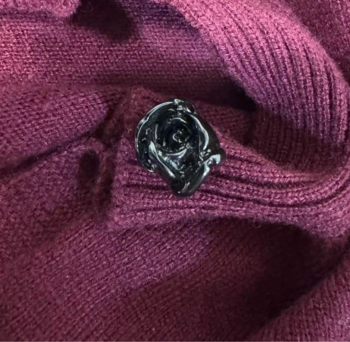 お首元には 一粒の漆黒ローズボタン。