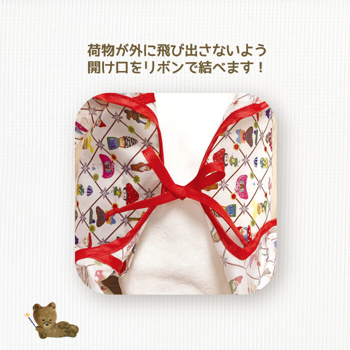 バッグの口をリボンに結べるのもポイントですね。