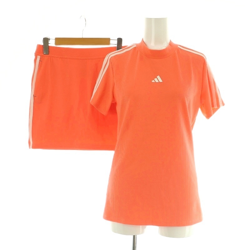 アディダス adidas 23SS ゴルフ セットアップ上下 スリーストライプス 半袖モックネックシャツ ストレッチプルオンスカート M ピンク