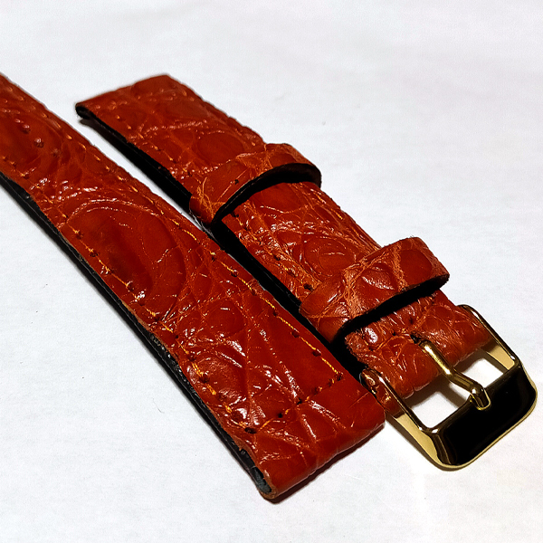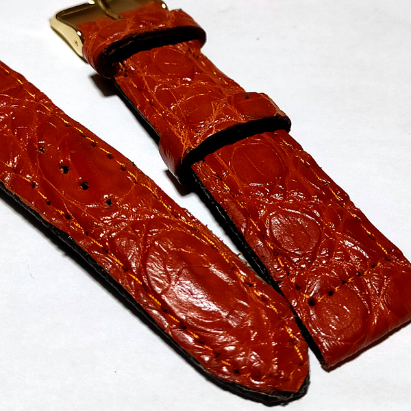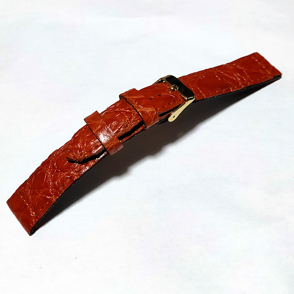 18㎜/本革クロコダイル■ 鬼灯色■金尾錠 /丸符鱗/ 17☆送料込//即決