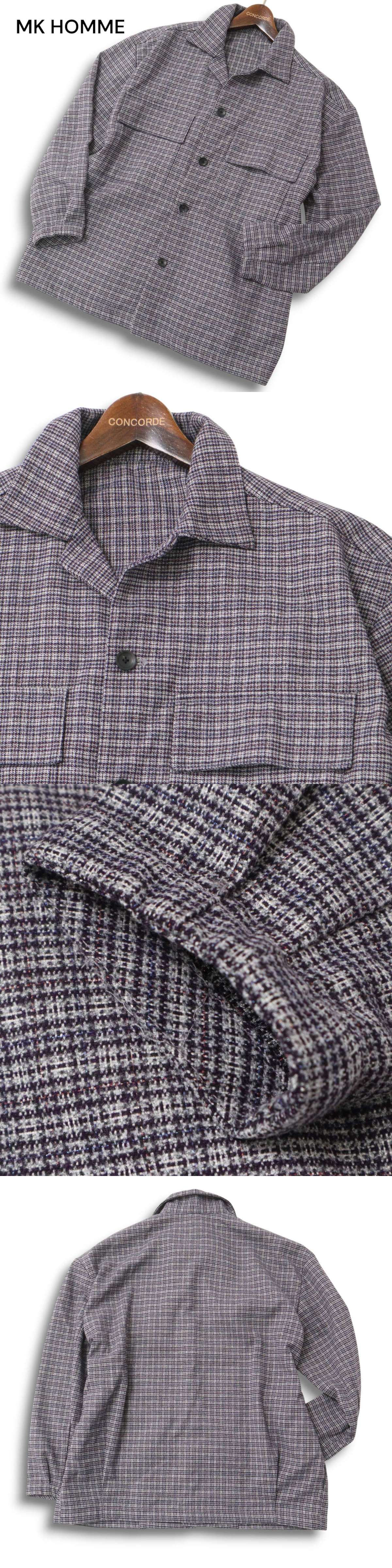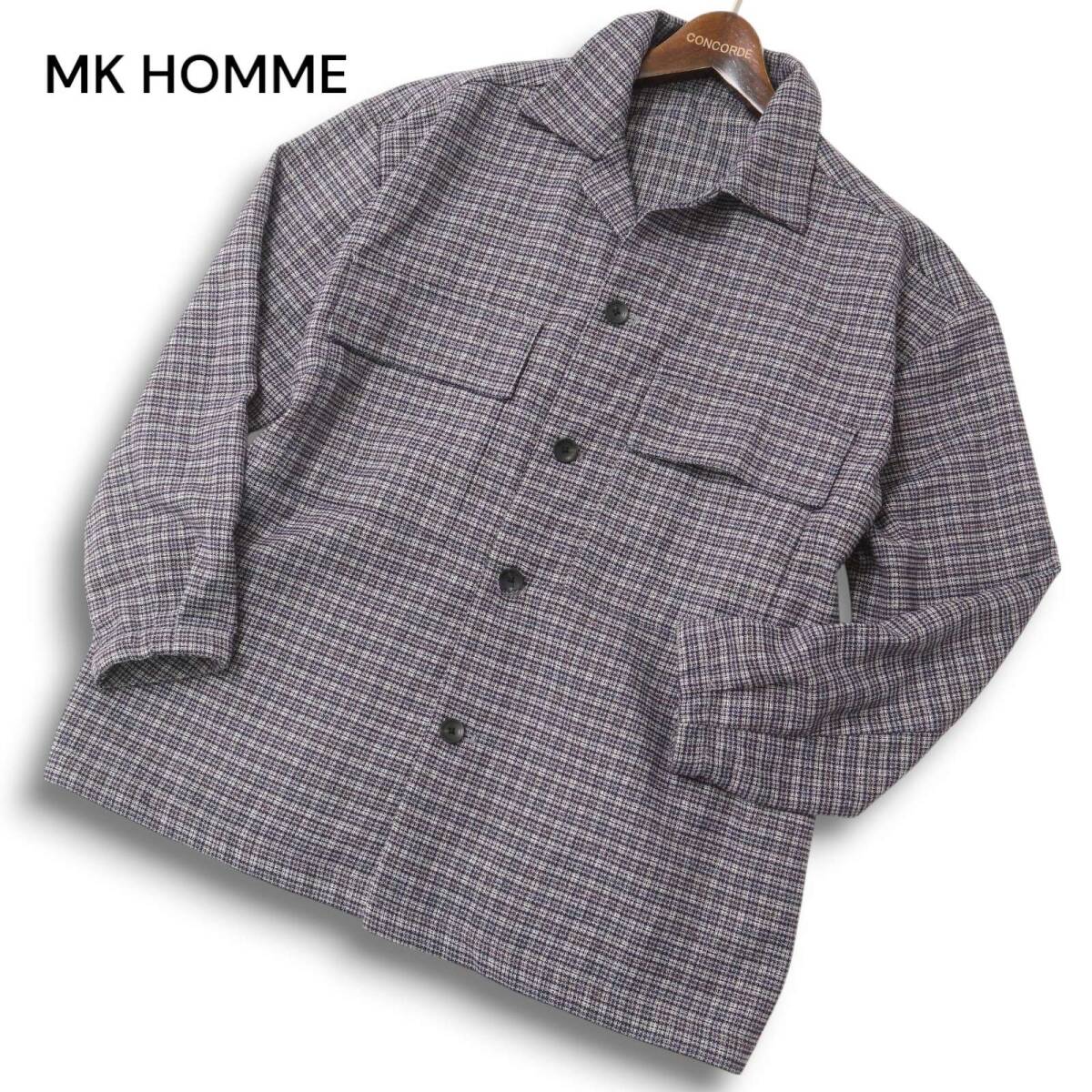 MK HOMME ミッシェルクラン オム 秋冬★ CPO チェック シャツ ジャケット ブルゾン オーバーサイズ Sz.46 メンズ グレー