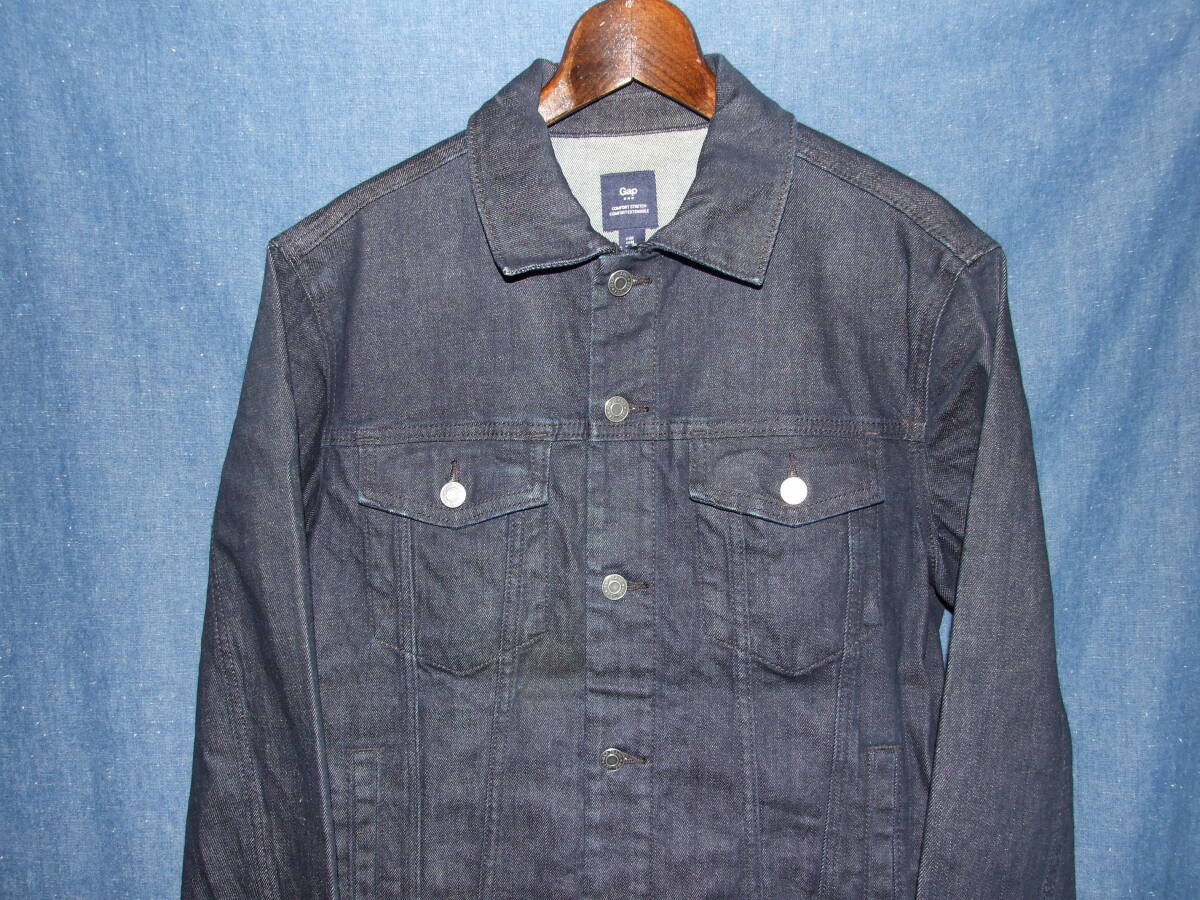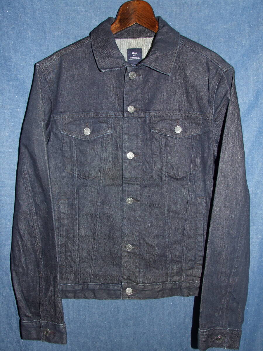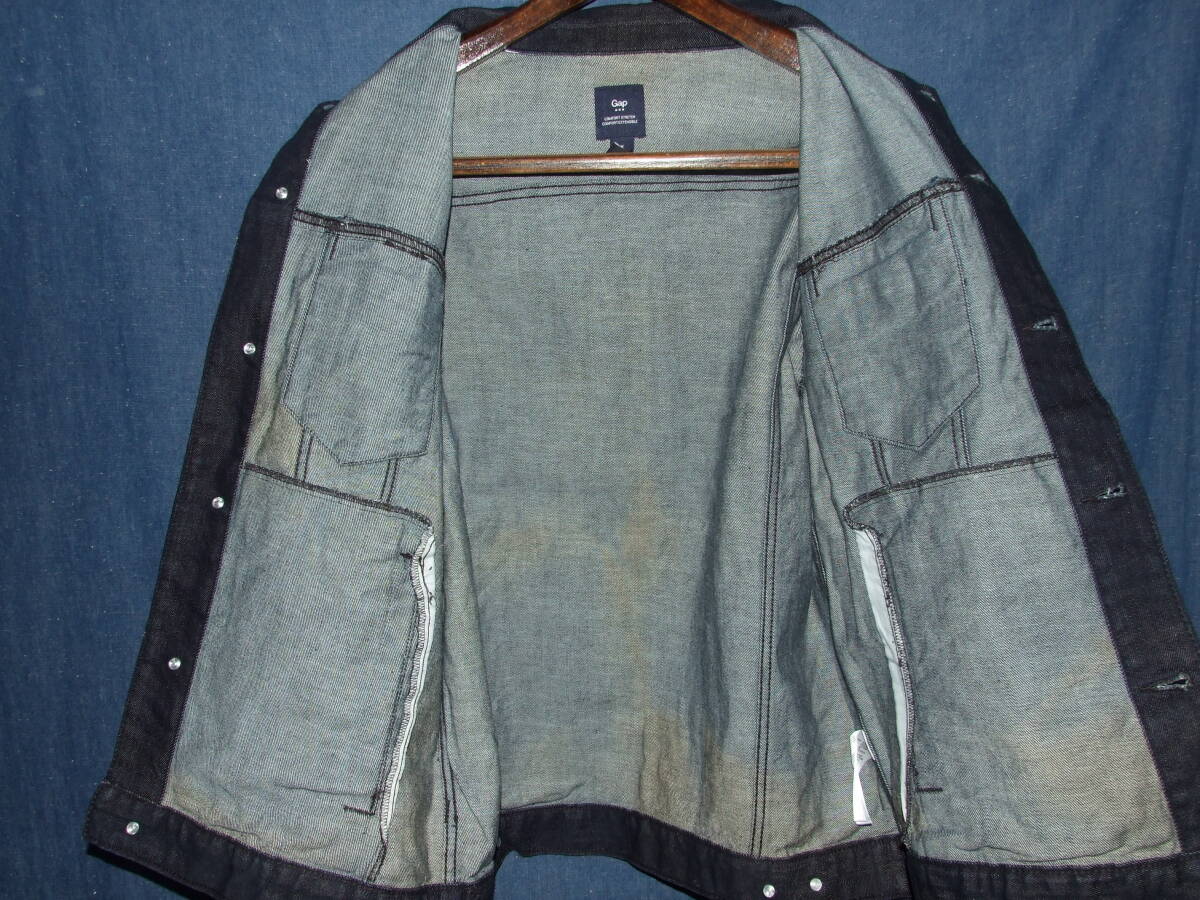 GAP/ギャップの3rd型Gジャン、使用品です。特に色落ちなく濃紺です。表記サイズはM,実寸着丈65/肩幅48.5/袖丈66.5/身幅55.5程でした。着用品ですので多少の使用感はございますが、致命的になるような大きなダメージはございませんので、気になる方がいらっしゃればどなたか使って下さい。