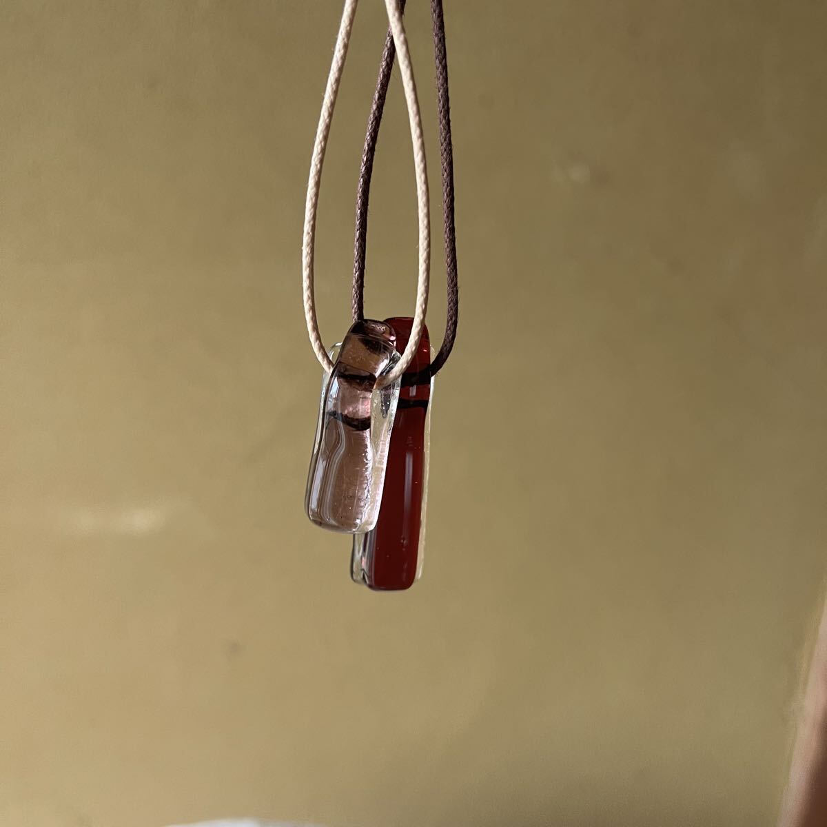 光に当たるととてもきれいな色のペンダントです。