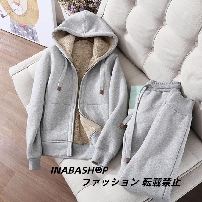 秋冬 裏ボア ジャージ上下セット レディース カジュアル スウェット パーカー パンツ アクティブウェア セットアップ 韓国 ファッション