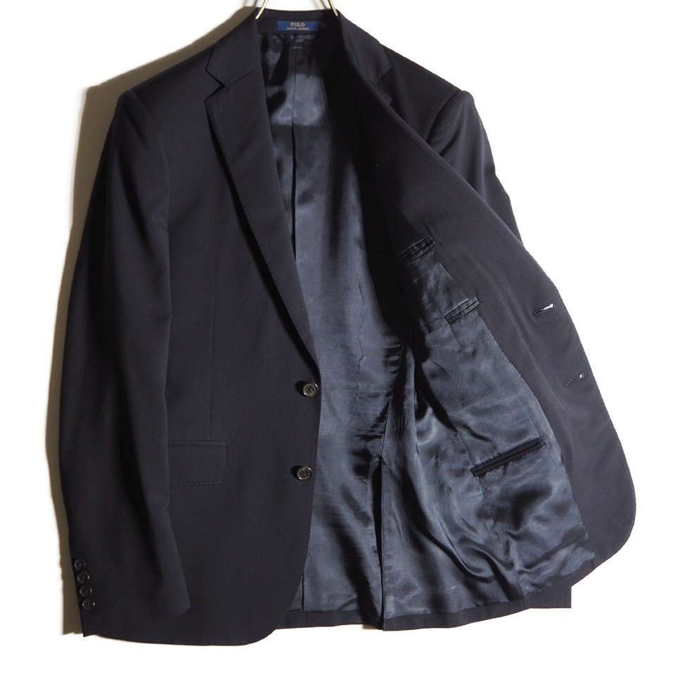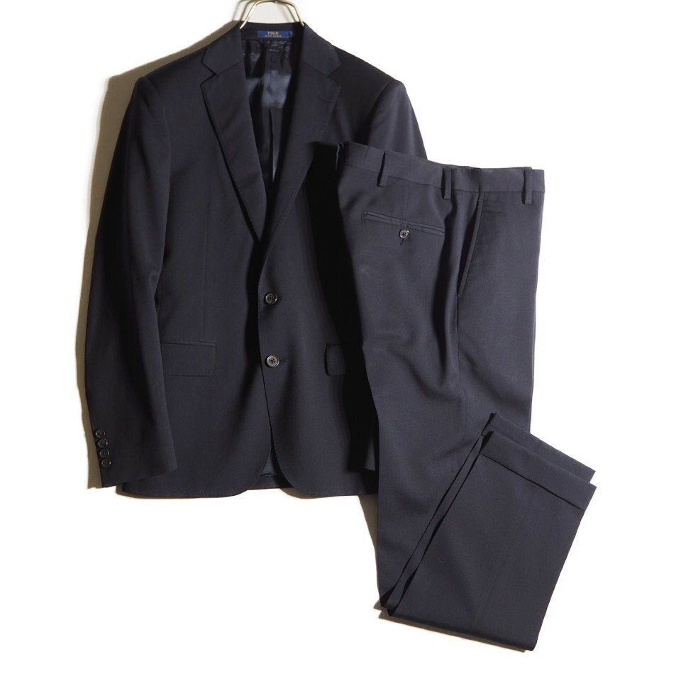 P5574h21 ■POLO RALPH LAUREN ラルフローレン■ イタリア製 2ボタン ウールスーツ ネイビー 34/S フォーマル セットアップ 紺 春~秋