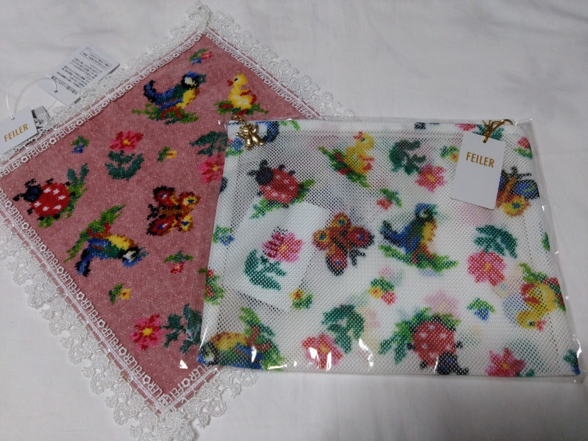 近沢レースコラボハンカチとフェイラーのポーチです。