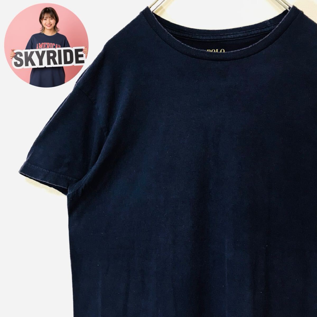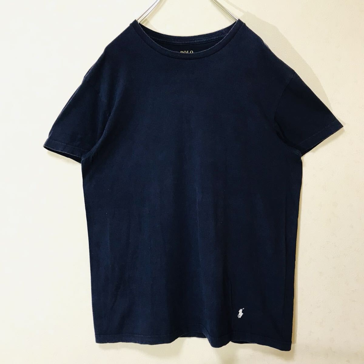 POLO RALPH LAUREN ポロラルフローレン Tシャツ ネイビー Mサイズ ワンポイントロゴ 刺繍ロゴ 人気 定番 アメカジ 古着 ゆるだぼ シンプルコーデ メンズ レディース ユニセックス USAカジュアル 春夏 秋冬 #TT0280