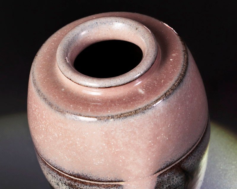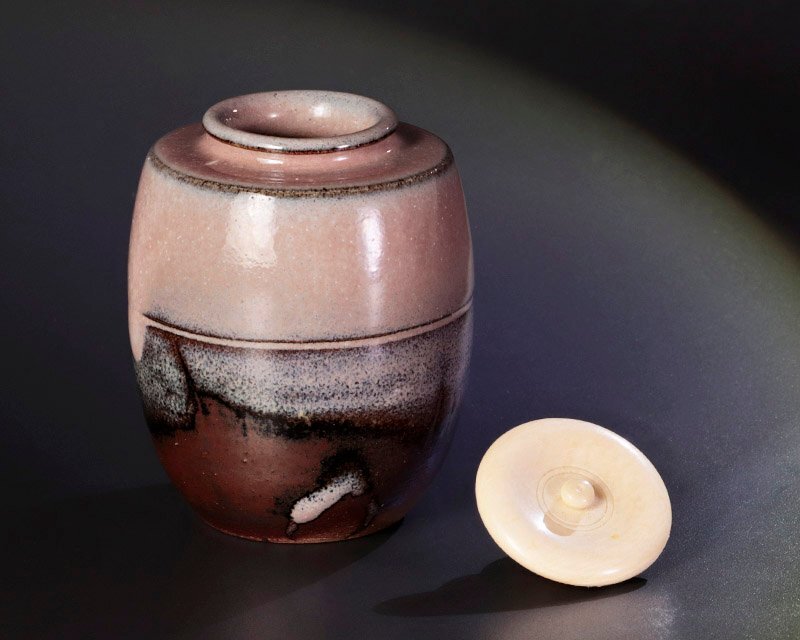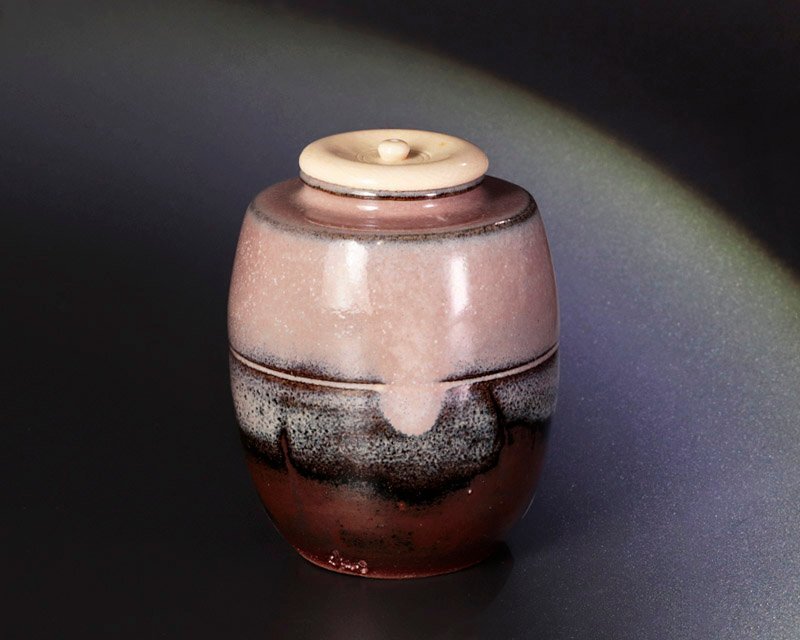 淡い桃色の釉肌に、窯変によって移ろった景色が重なり、趣深い表情を見せる美しい茶入です。山椒緞子が付属いたします。 ★商品は波多野善蔵の作品である事を保証致します。 |