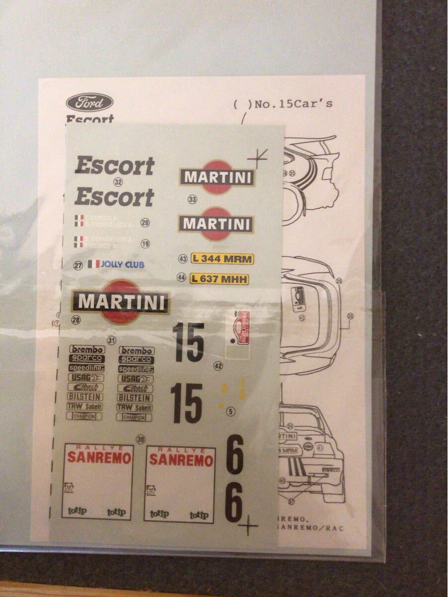 1/24 エスコートRS マルティーニのデカールですが、メーカー等詳細不明です。未開封品ですが、使用可否も不明です。古い物なので、NC/NRでお願いします。