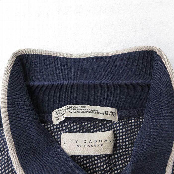 【商品名】 XL★古着 HAGGAR 半袖 ポロ シャツ メンズ 00年代 00s 総柄 コットン 紺他
