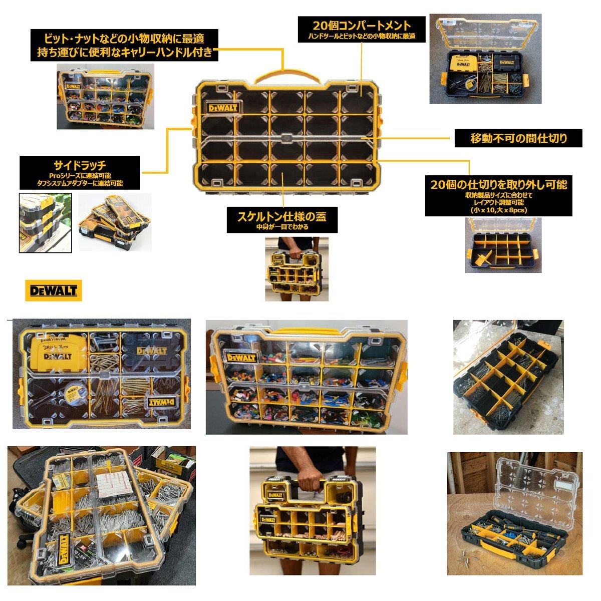 20個のコンパートメントで、ハンドツールやビットなどの小物収納に最適。整理整頓が簡単にでき、必要なものがすぐに見つかります。