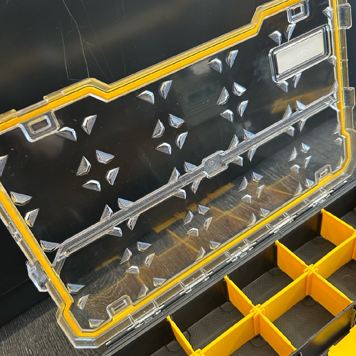 しっかり密閉できる蓋で、移動時も中身が動かず安心。大切なツールやパーツをしっかり守ります。