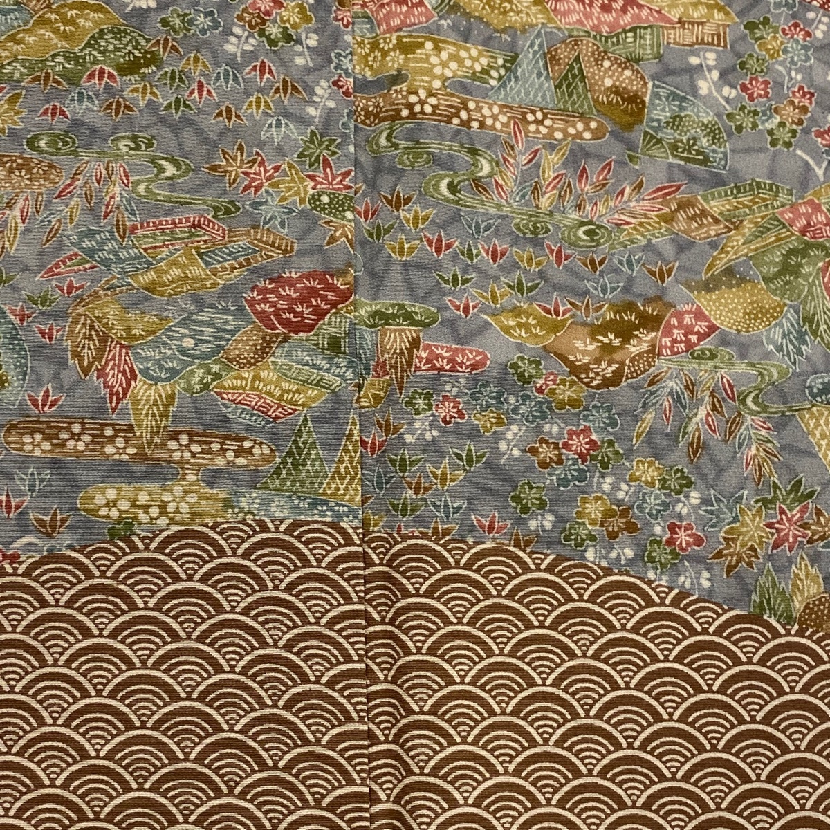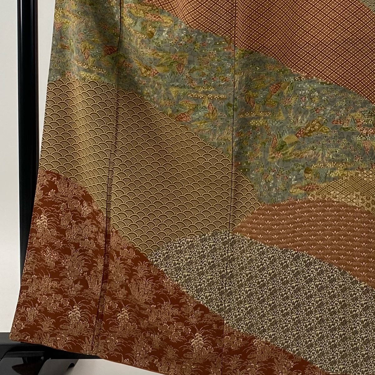| 訪問着 美品 秀品 落款 舟 青海波 染め分け 灰緑 袷 身丈161.5 裄丈66 M 正絹 【中古】 |