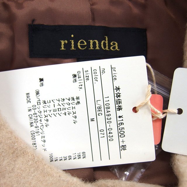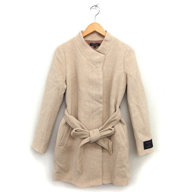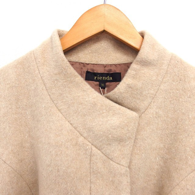 未使用品 リエンダ rienda タグ付き スタンドカラー コート ミドル ウール混 リボン M ベージュ /NT24 レディース