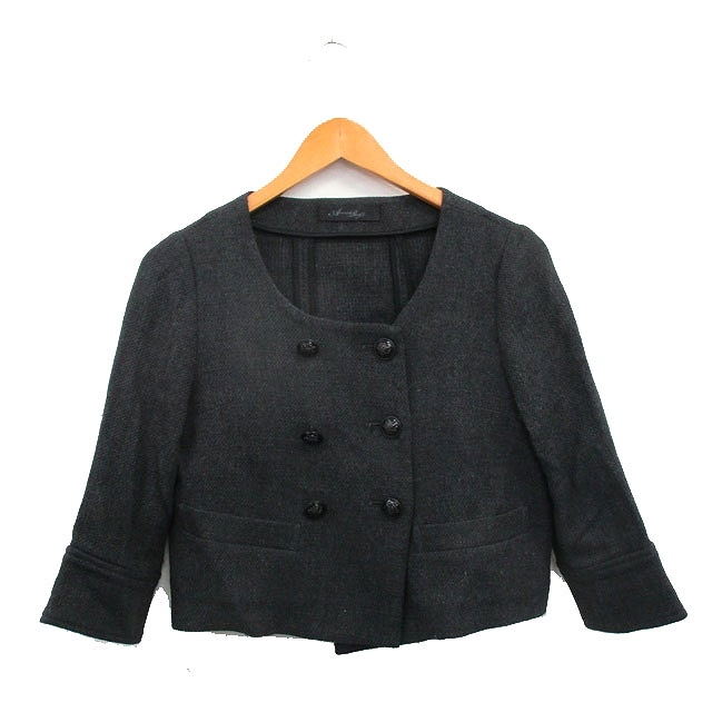 アメリカンラグシー AMERICAN RAG CIE ノーカラージャケット 七分袖 ウール シンプル F チャコールグレー /KT15 レディース