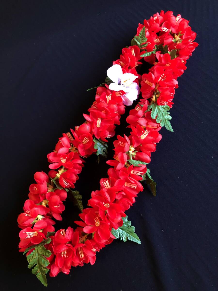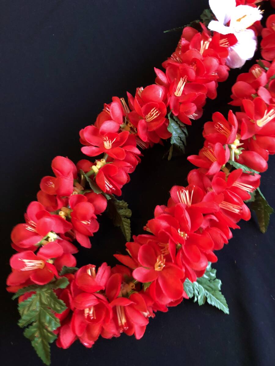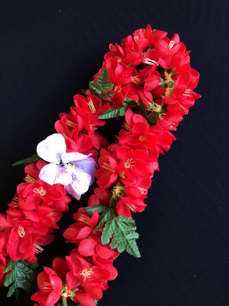 フラダンスに レイ 送料230円 美品 赤 花飾り
