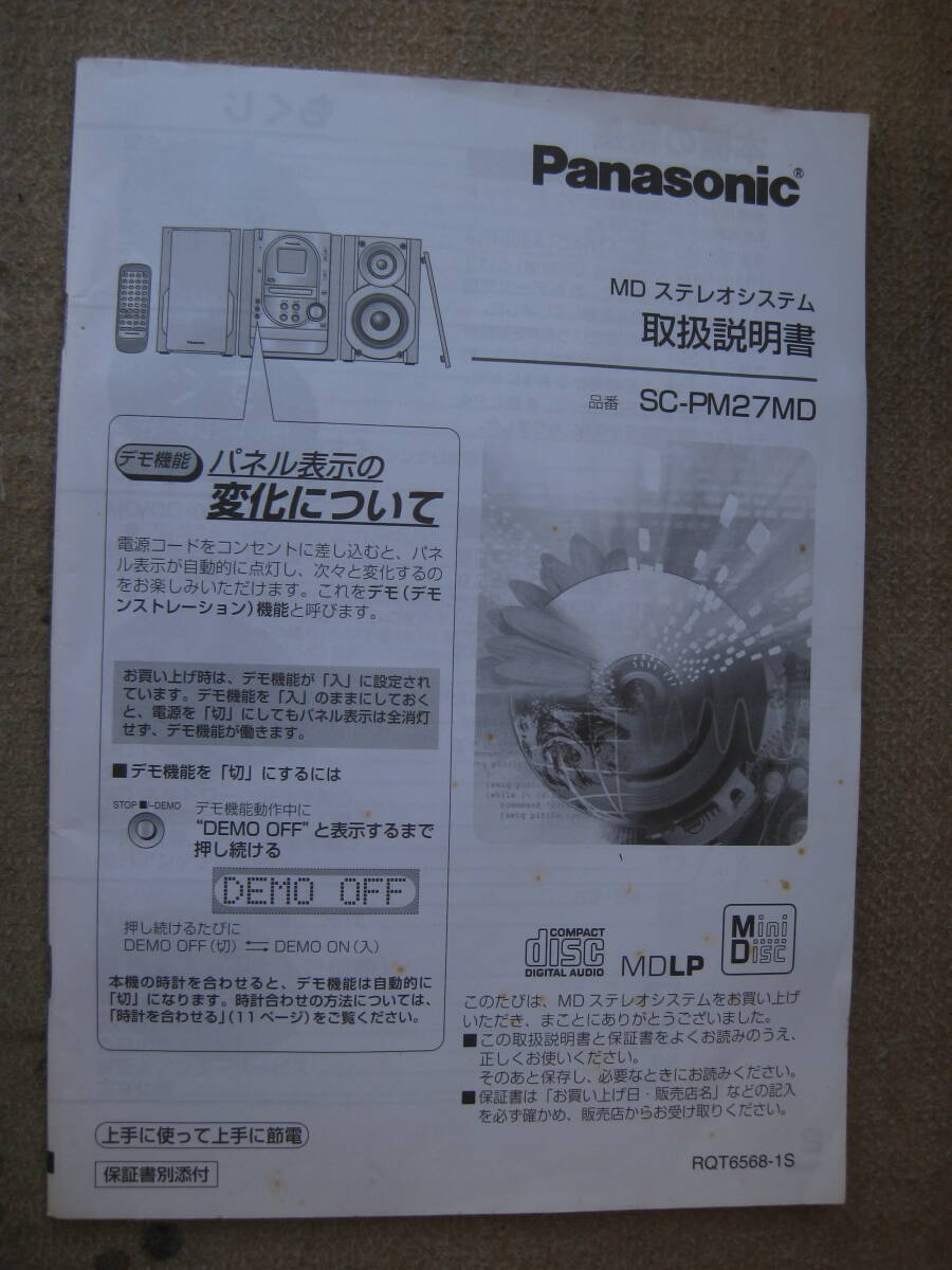 ★Panasonic MD STEREO SYSTEM CD MD ミニコンポ SA-PM27MD 2002年製