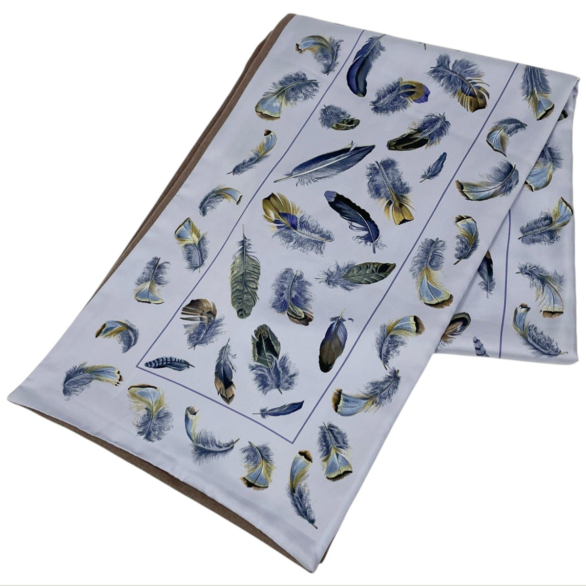 エルメス HERMES 羽柄 マフラー リバーシブル ストール フェザー マフラー シルク アンゴラ ライトブルー グレージュ レディース 【中古】 |