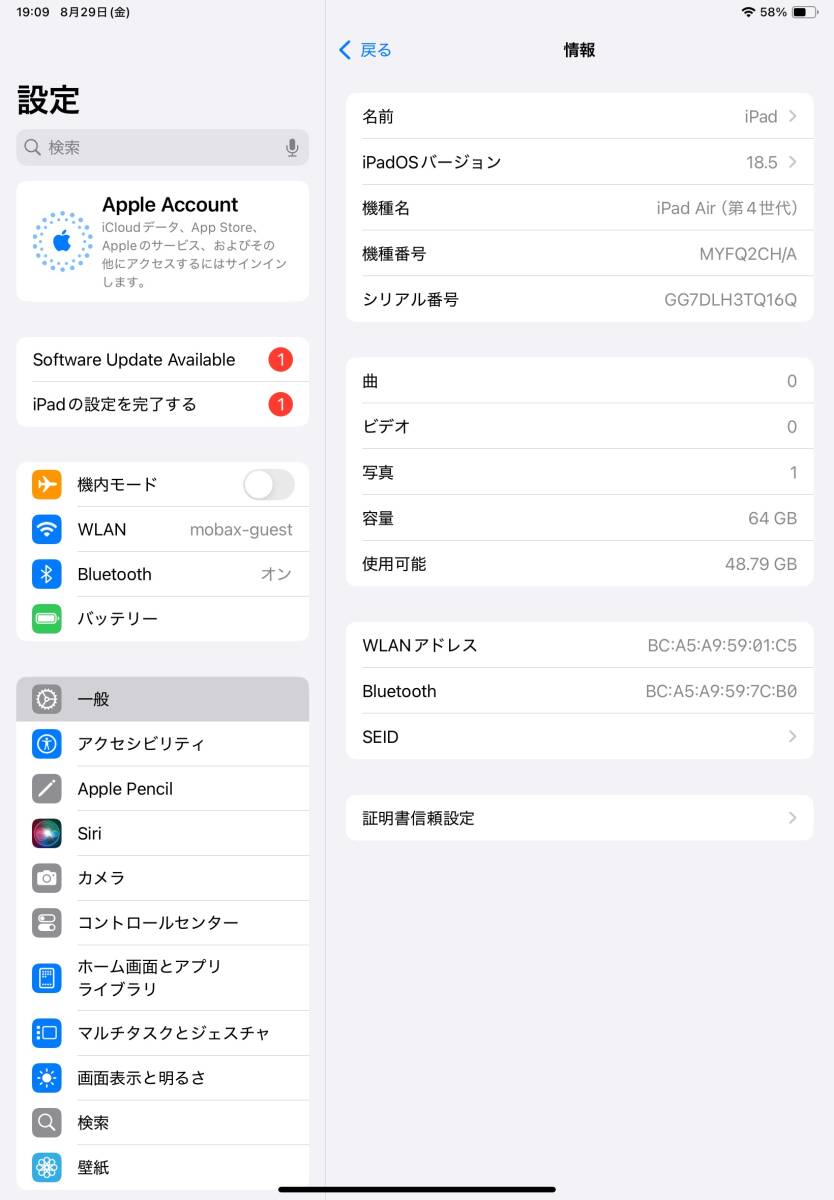 | Wi-Fiモデルのため、SIMカード(eSIM含む)は利用できません。 | ||