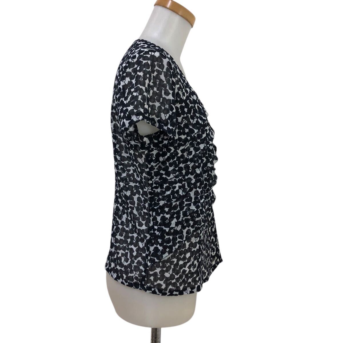 8ND306-31 Leilian レリアン 半袖 シャツ ブラウス トップス ポリエステル100% ブラック系 総柄 レディース 9