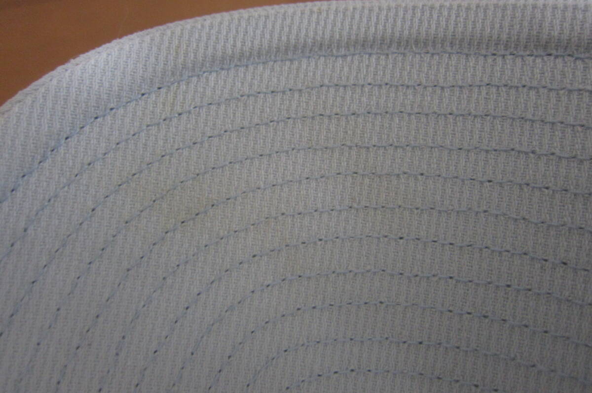 ・ツバ裏にシミ・黄ばみ有り(写真10)。