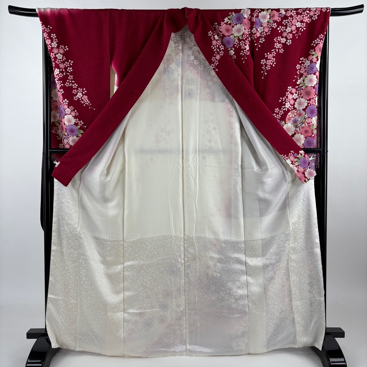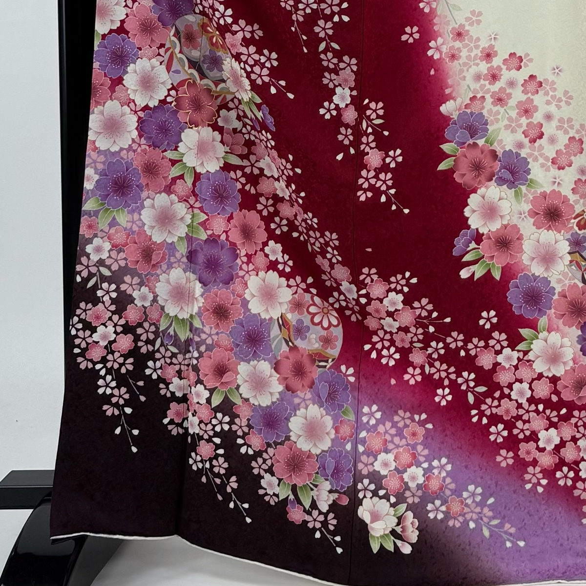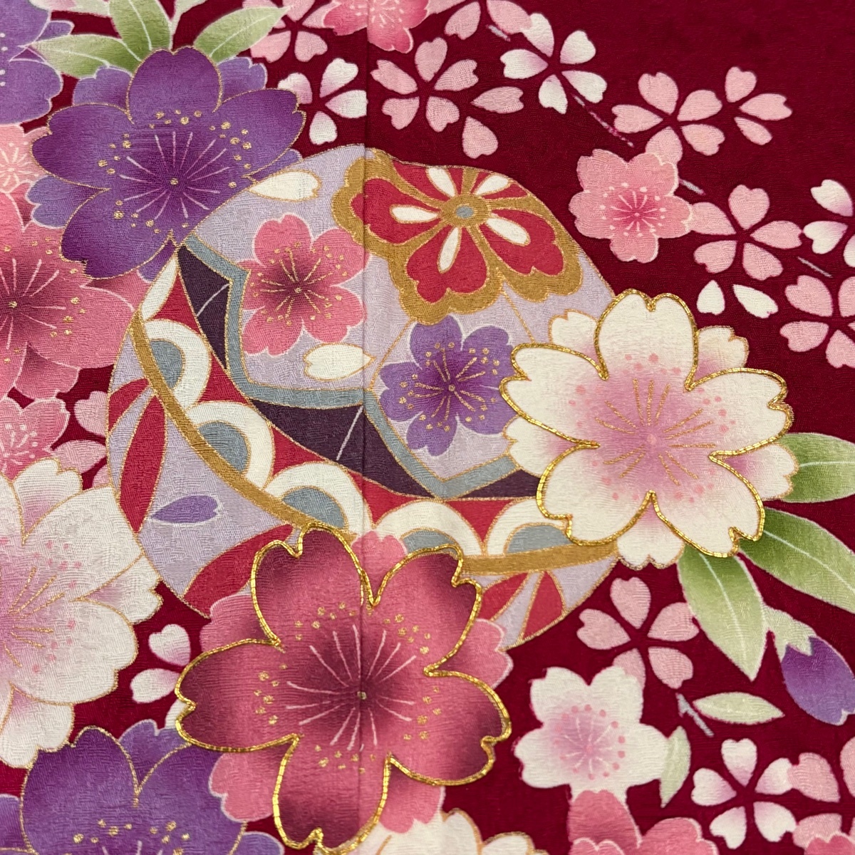 振袖 美品 名品 やまと 手鞠 桜 金糸 金彩 えんじ色 袷 身丈167.5 裄丈70 L 正絹 【中古】 |