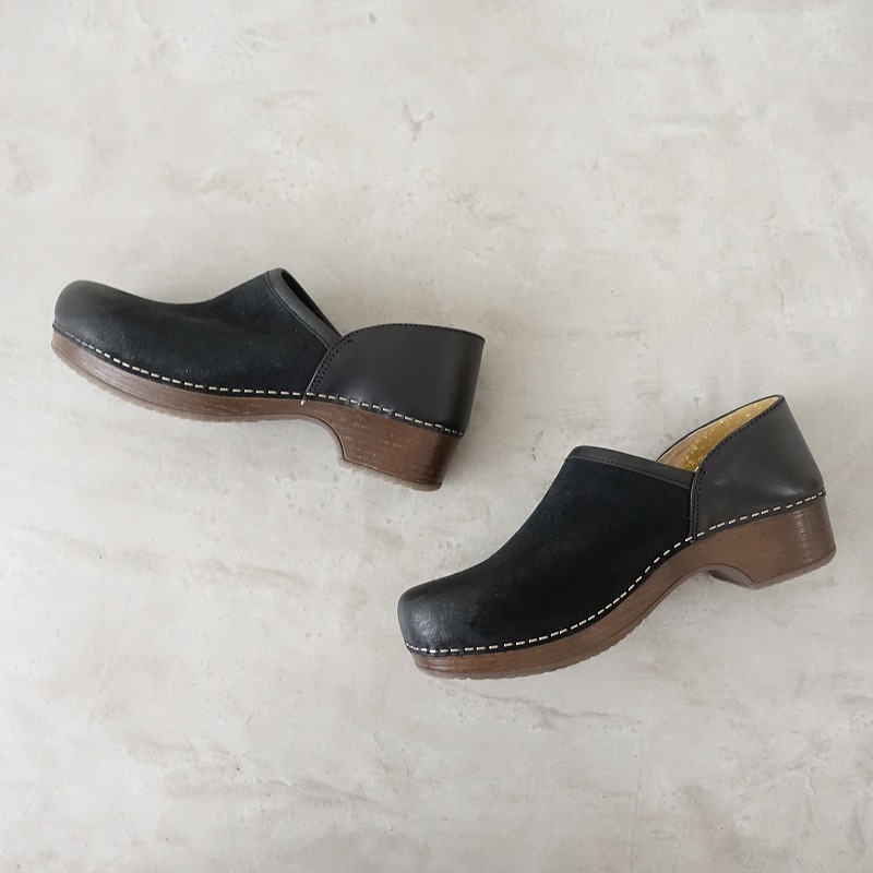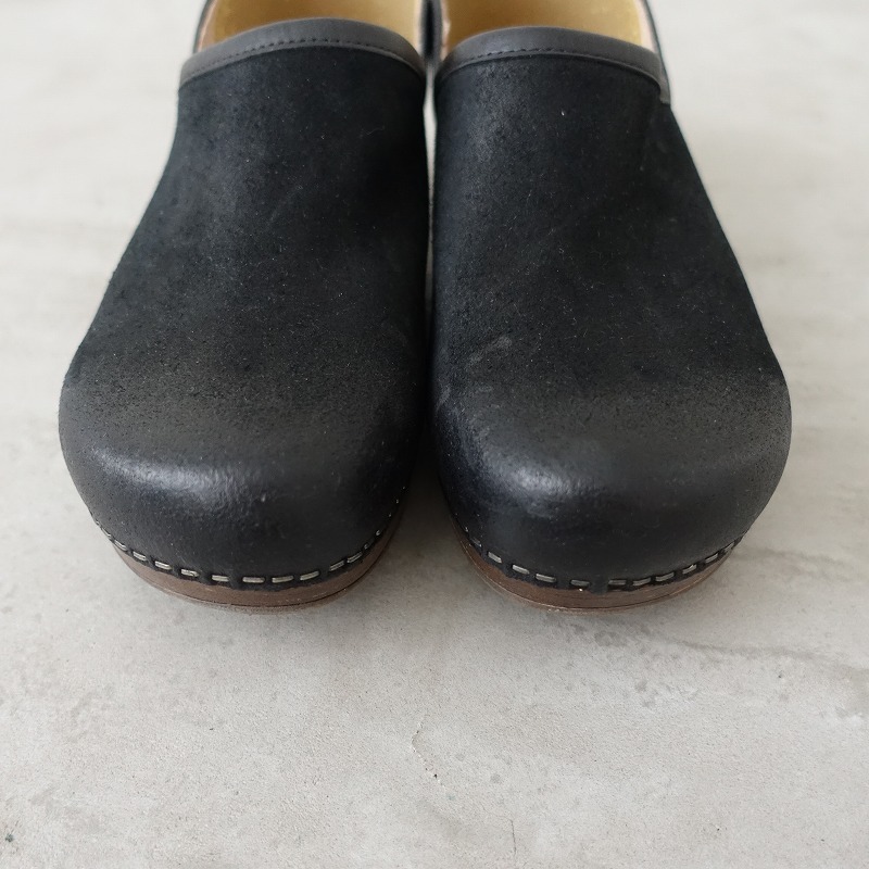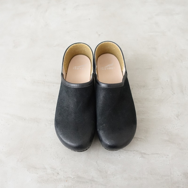 DANSKOのBRENNA スエードレザークロッグスです。カラーは黒で素材はレザー、インソールはクッション性があり、定価(メーカー希望小売価格)29,700円の商品です。 |
