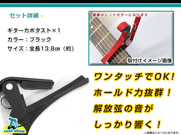 メール便 アコースティックギター フォークギター エレキギター 対応 バネ式クリップタイプ カポタスト カポ ブラック 黒