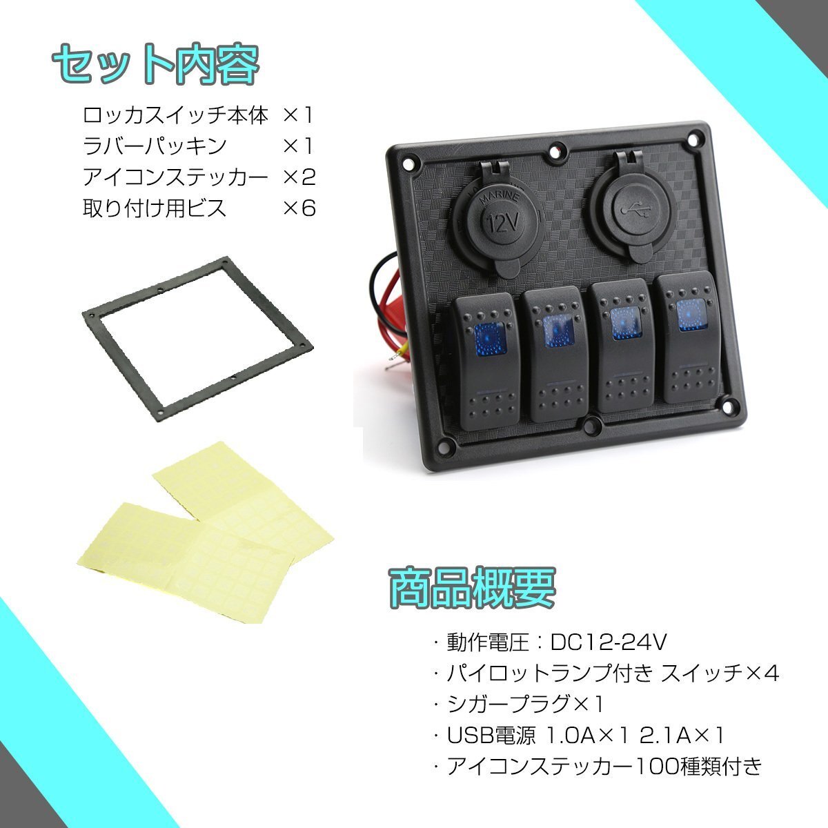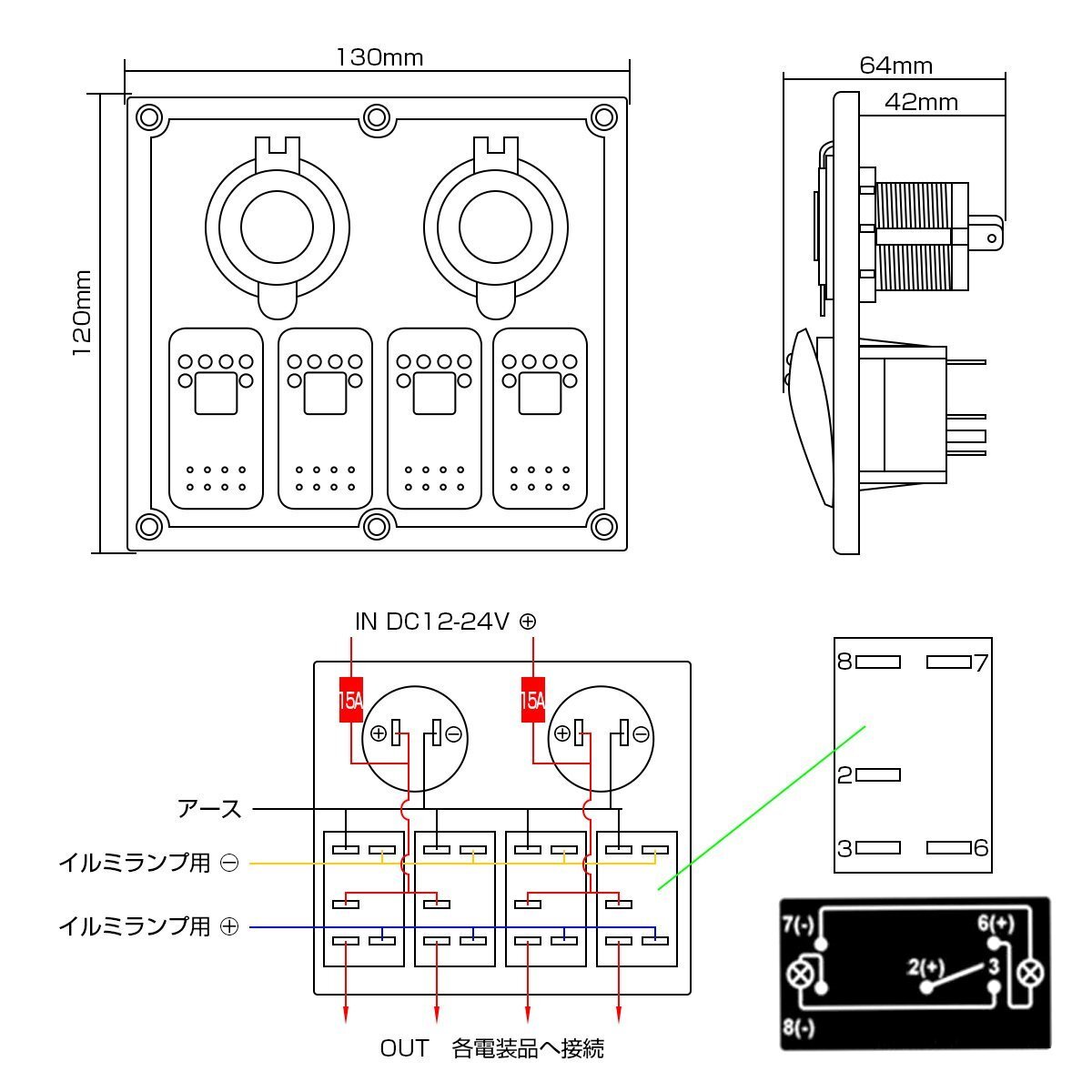 ■商品コード IZ275 ■特徴 動作電圧はDC12V?DC24Vで自動車、トラック、バス、船舶など 幅広く使用できる防滴仕様のロッカスイッチ。 パネルに組み込み済みでそのまま使用でき、必要であれば 各スイッチやソケットをパネルから外して使用できます。 スイッチはイルミネーション付きで暗い場所でも作動状態を確認できます。 スイッチ表面は凹凸があり濡れた手や手袋越しでも 操作しやすくしっかりとしたクリック感があります。 ■商品詳細: ・ 汎用ロッカスイッチパネル ・ 動作電圧:DC12-24V ・ ロッカスイッチ ×4 ・ シガーソケット ×1 ・ USB電源 1.0A×1 2.1A 各×1 ・ アイコンステッカー ・ 防滴タイプ その他ロッカスイッチは→コチラ |