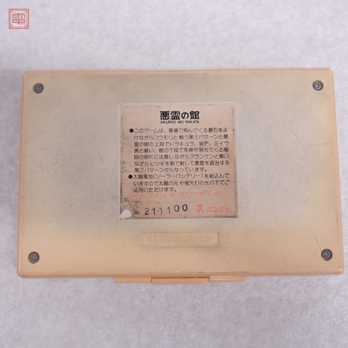 LSIゲーム 電子ゲーム LCD SOLARPOWER 悪霊の館 BANDAI バンダイ 起動不可 ジャンク ■ジャンク品として出品しておりますので、どの様な不具合が生じましても当店では交換・返金・返品等の対応はできません。 ■ご理解ご納得いただける方のみご入札をお願いいたします。 ■本体にスレ、キズ、汚れ、ヤケ、黄ばみがあります。 ■写真のものが全てです。付属物の有無や状態については写真からご判断ください。 ■チェックに使用したモニターやチェック機器等は、特に表記がない限りは付属いたしません。 ■商品到着後、当店の保証期間中は、商品及び箱や取説、付属品などを1つでも廃棄や破損をしないようにお願い致します。廃棄や破損をした場合、商品に問題があった場合でも対応や返金などの対処ができなくなります。 | |||