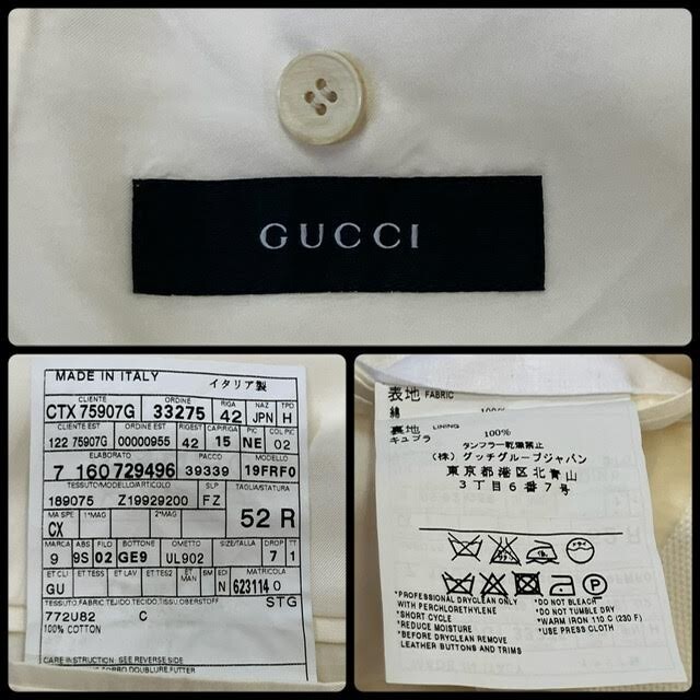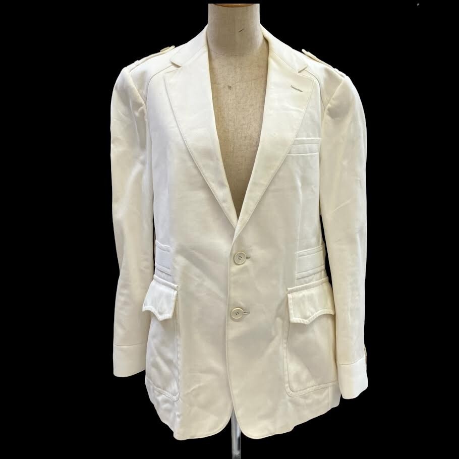 仙6 GUCCI テーラードジャケット ホワイト サイズ42 コットン100% イタリア製 グッチ ジャケット 白 レディース