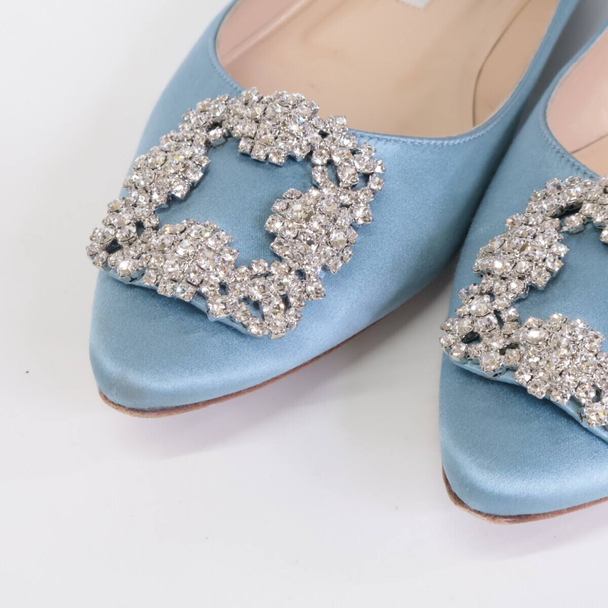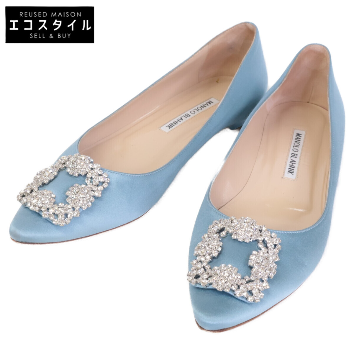 商品名 マノロブラニク HANGISI ハンギシ サテン ビジュークリスタル ストラスバックル フラットシューズ