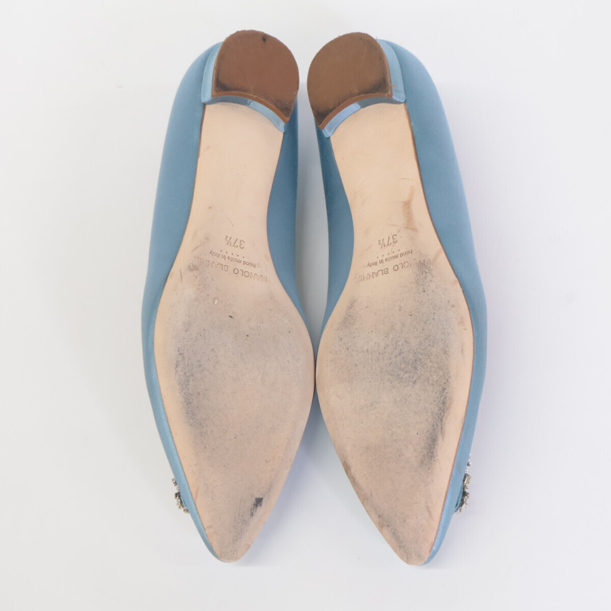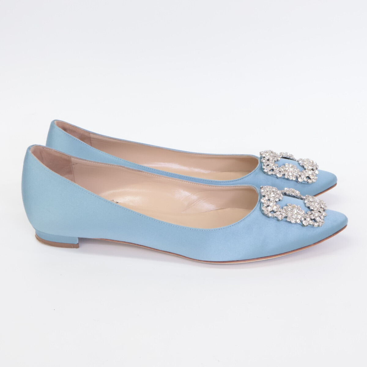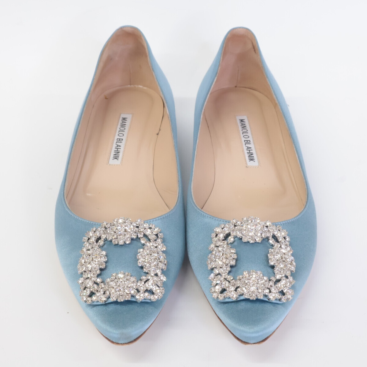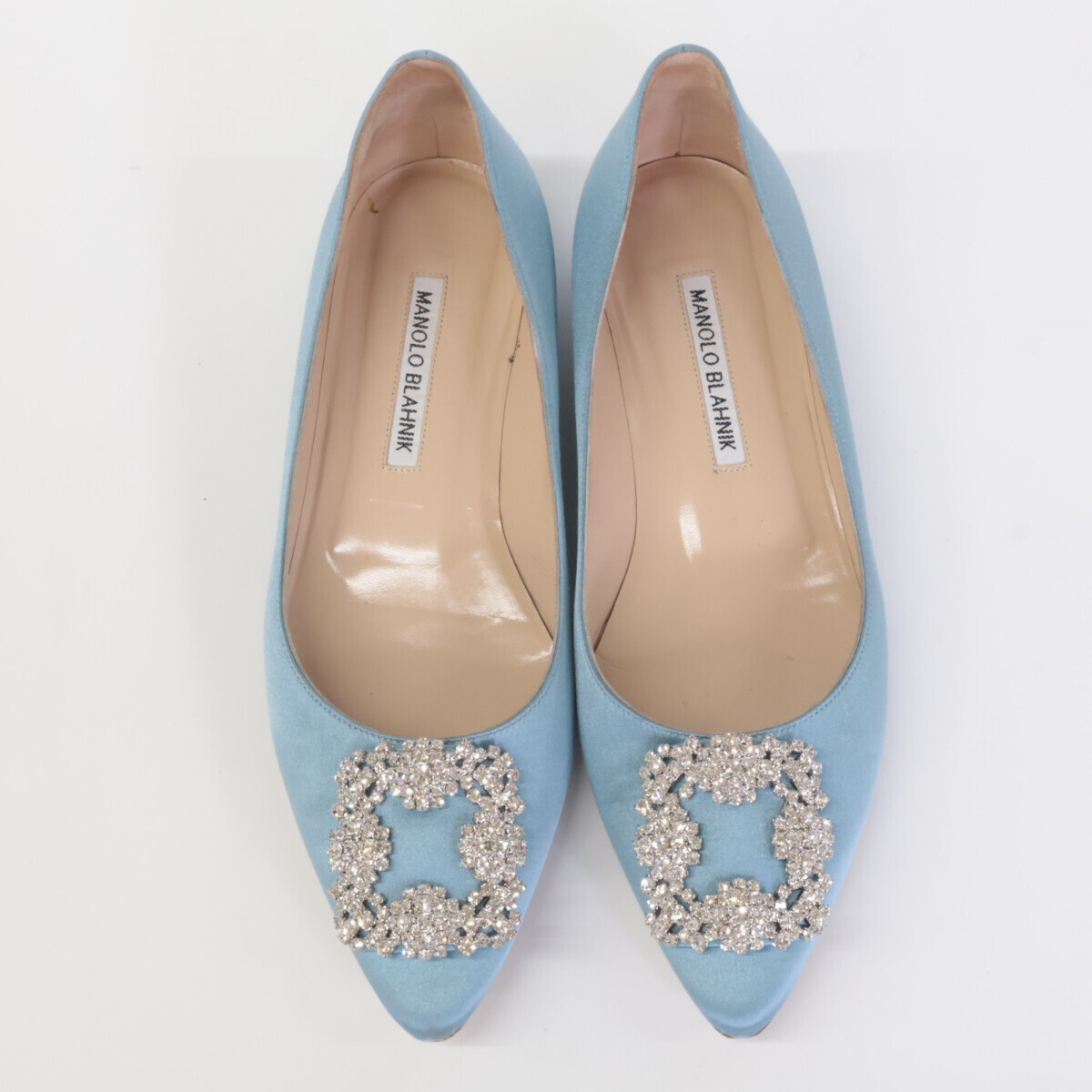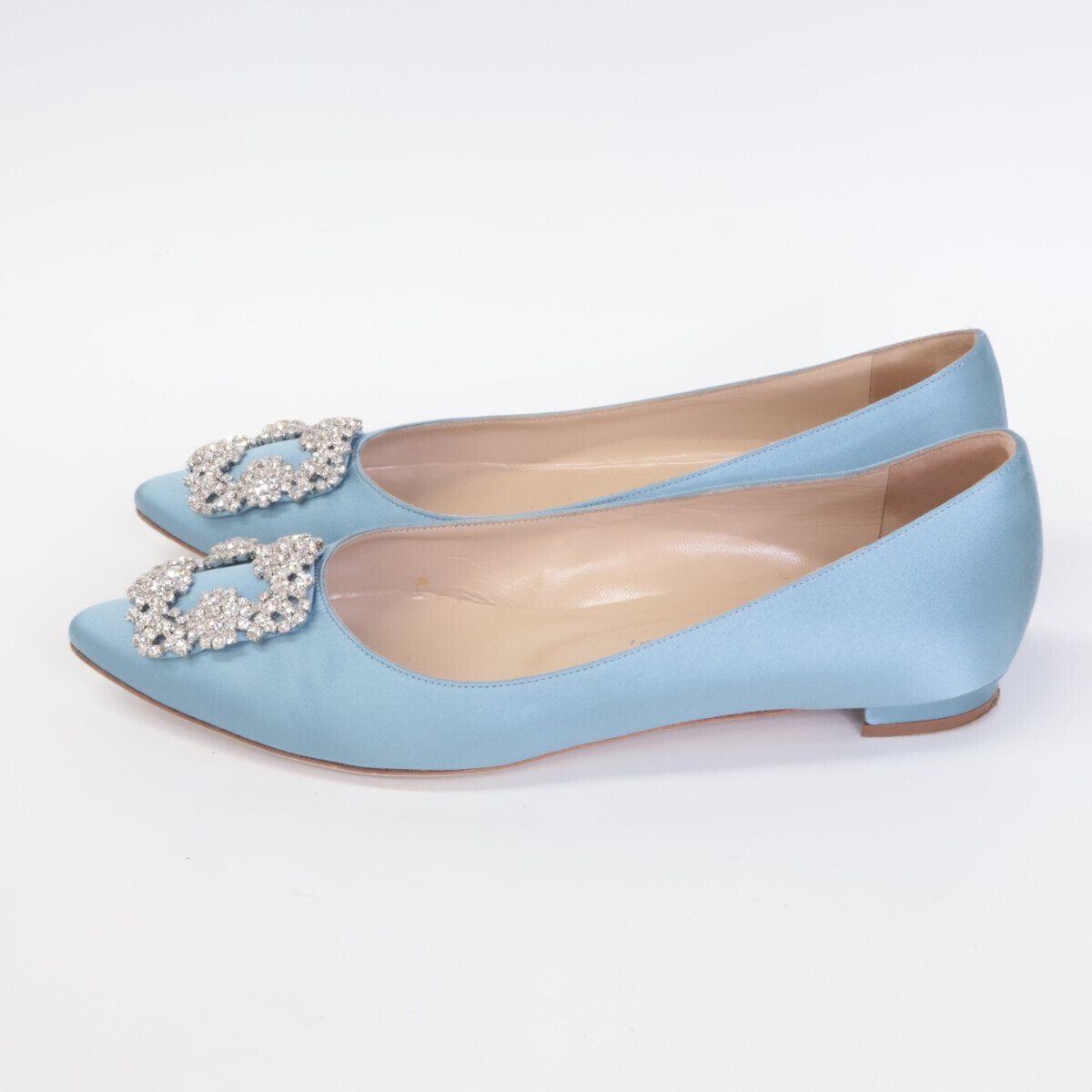 MANOLO BLAHNIKマノロブラニク HANGISI ハンギシ サテン ビジュークリスタル ストラスバックル フラットパンプス 37 1/2