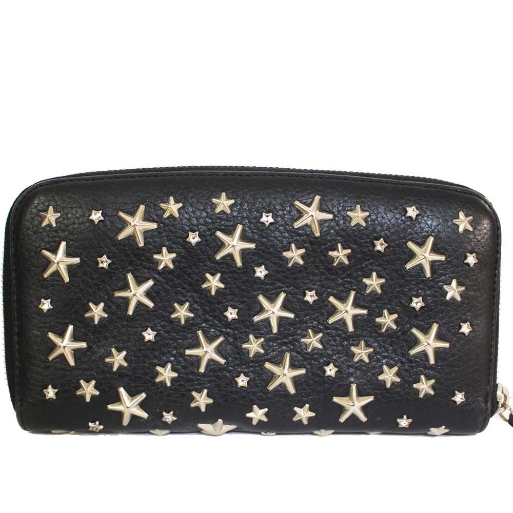 ジミーチュウ ラウンドファスナー スタースタッズ フィリッパ 長財布 レディース レザー ブラック 中古 JIMMY CHOO