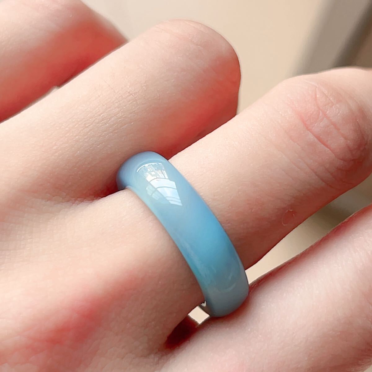 ◇ブルー瑪瑙◇指輪◇リング◇15号◇メノウ◇天然石◇パワーストーン◇巾着袋つき◇プレゼントにも040R9317