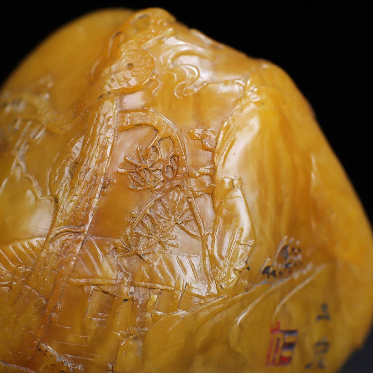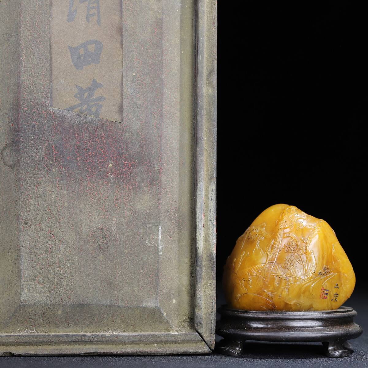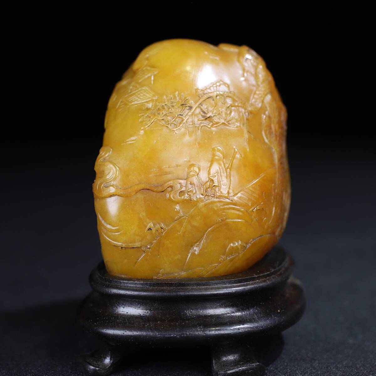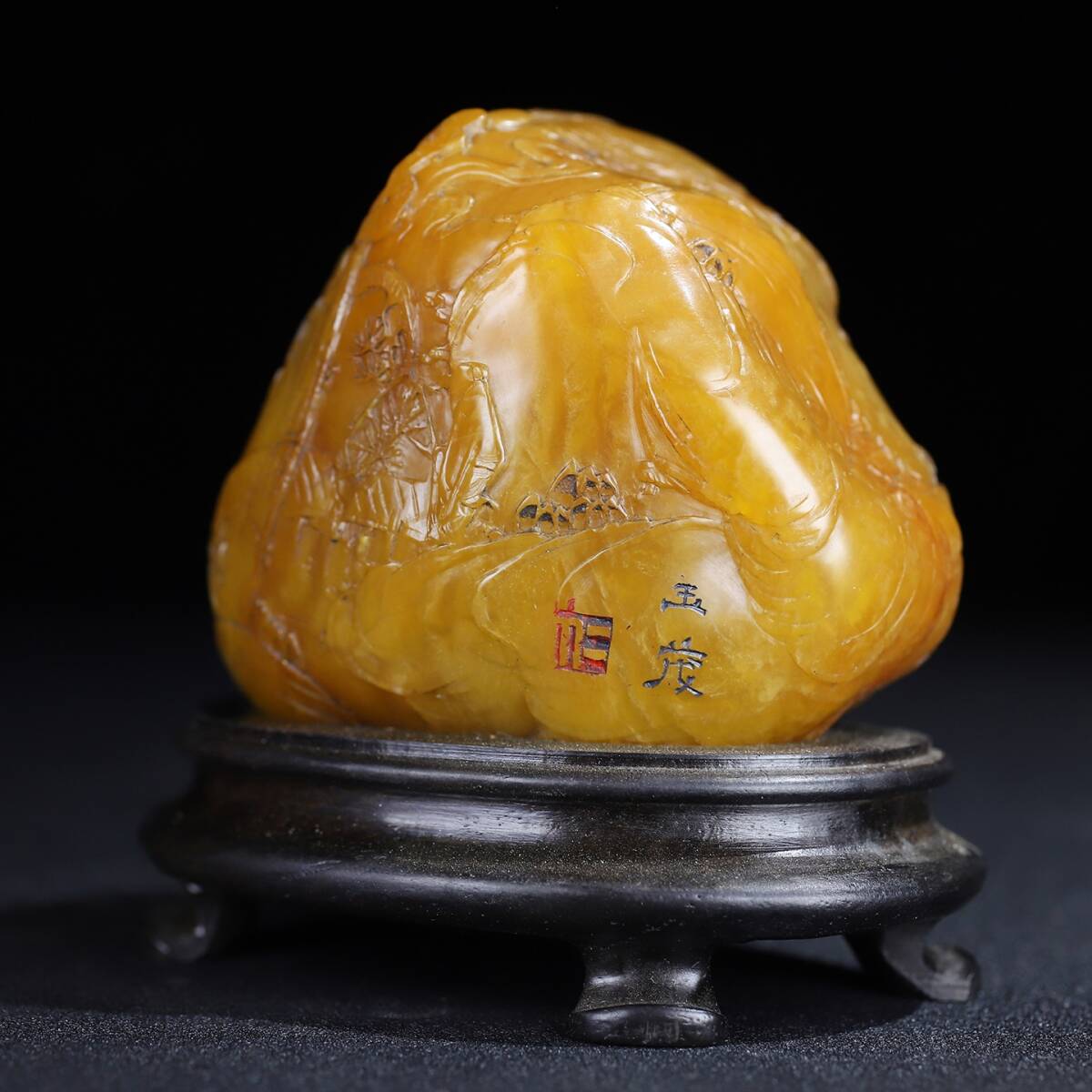 唐物 【清代篆刻家潘玉茂】寿山石 彫刻 攜童訪友 山水人物紋 薄意 置物 天然石 手彫 篆刻 極細工 中国古玩 骨董品 古美味 D69