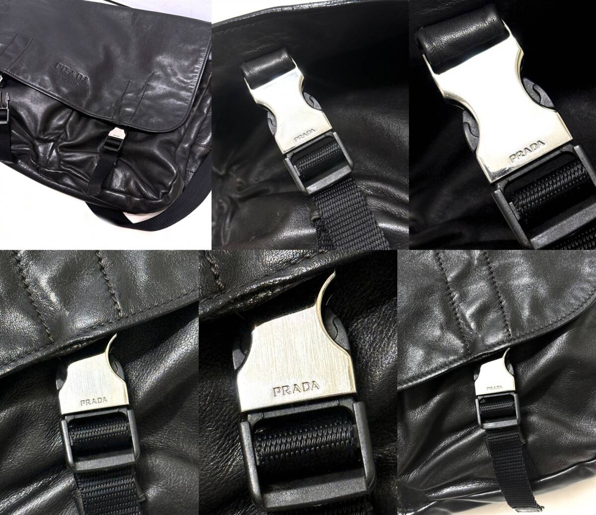 美品 PRADA プラダ ラム レザー メッセンジャー ショルダー バッグ ハイエンド 定価35万 ロゴ エンボス ブラック メンズ 希少