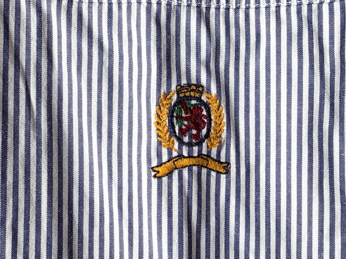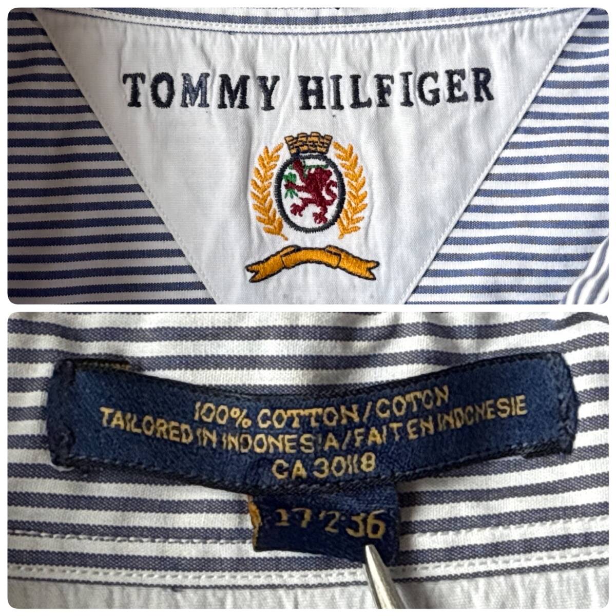 ☆送料無料☆ TOMMY HILFIGER トミーヒルフィガー USA直輸入 古着 長袖 ストライプ 胸ポケット付き ボタンダウン シャツ メンズ 171/2 中古