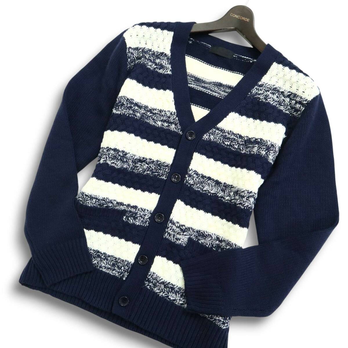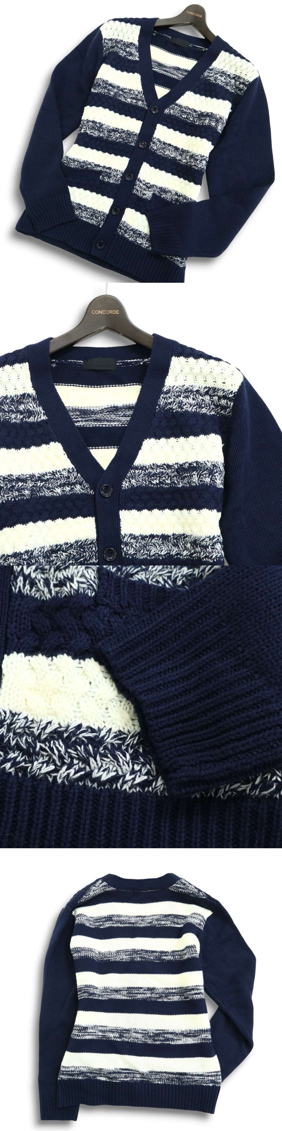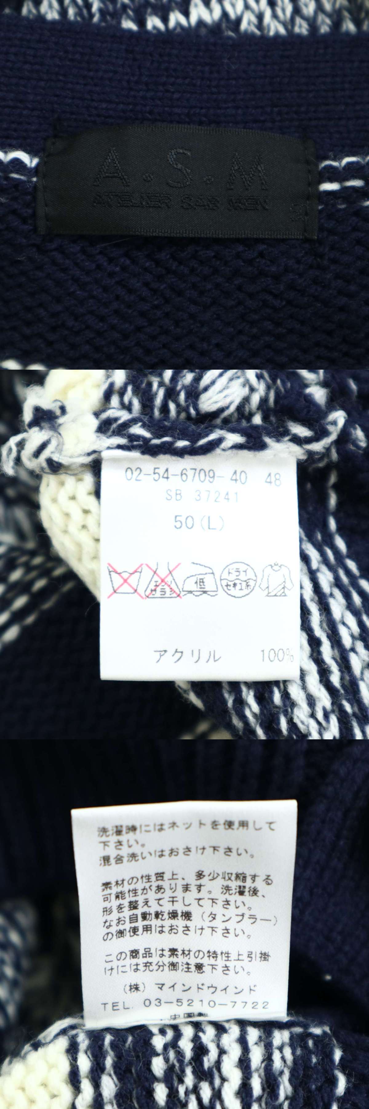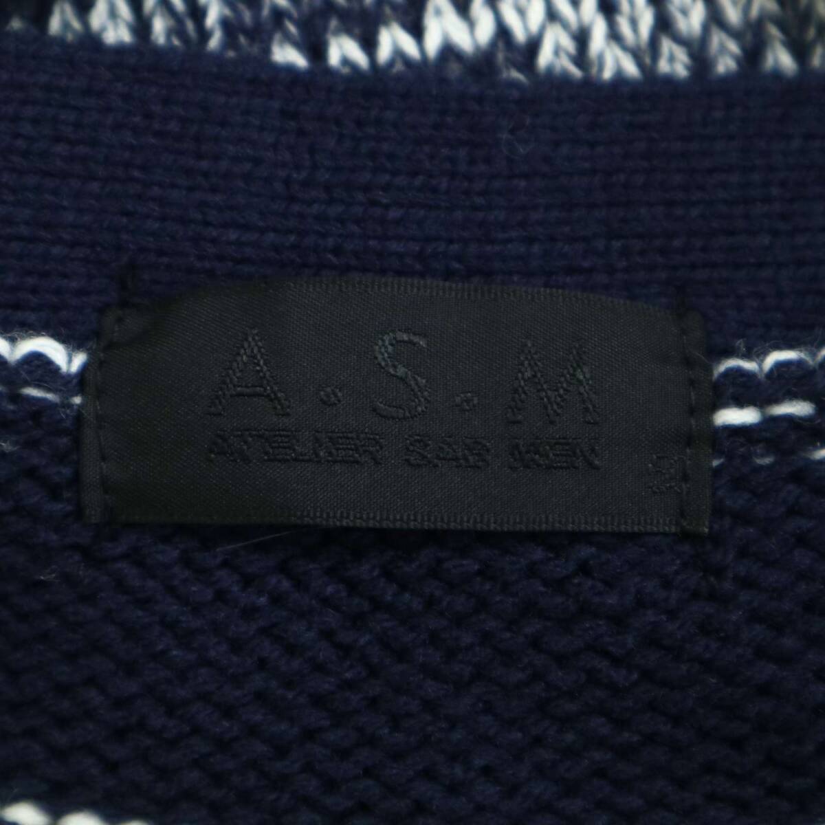 A.S.M アトリエサブ メン 秋冬★ ボーダー ニット カーディガン Sz.50 メンズ 紺 ネイビー ASM