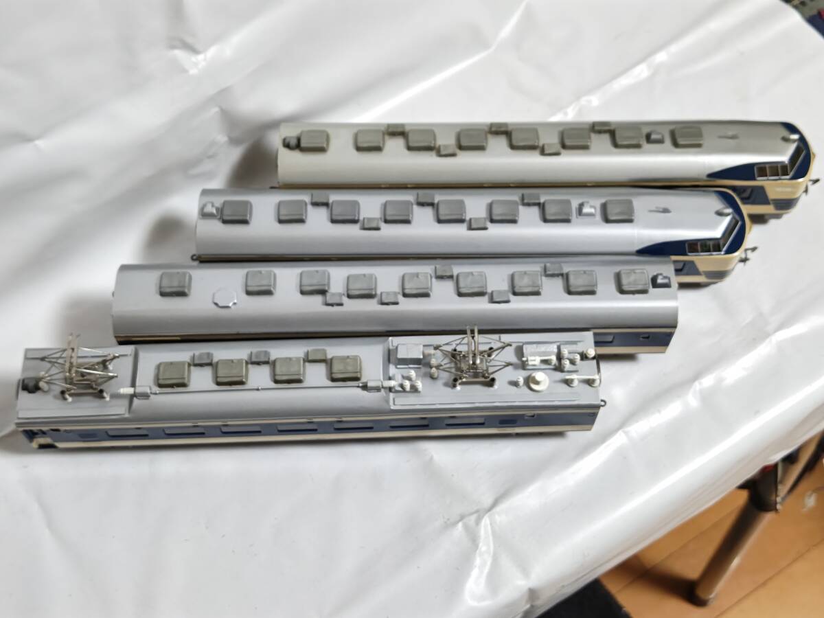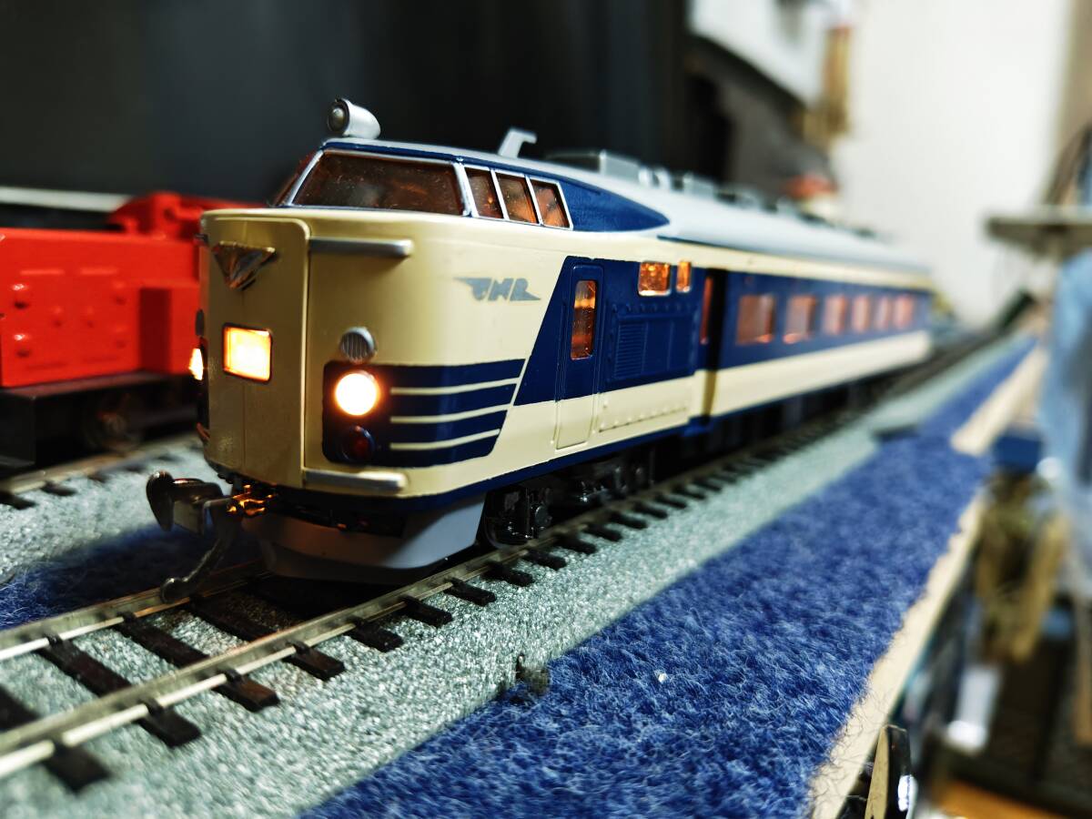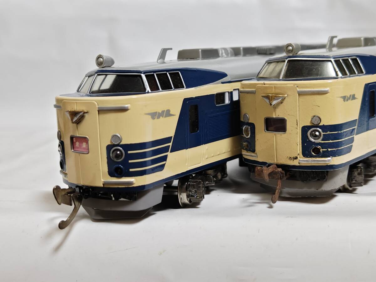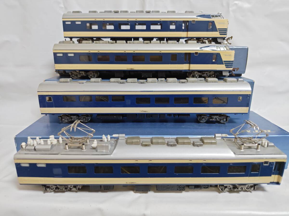 経年の割には4両ともに外観は良い方かと思います。クハネ581は「金星」「月光」のプレートが入っており、前照灯尾灯の点灯切り替え正常で室内灯も2個ともに点灯します。中間車の2両も室内灯はそれぞれ2個ともに点灯します。モハネは今のところ前後ともにスムーズに走行します。枚数の関係で床下の写真がありませんが、見る限り欠損はなくきれいな状態です(床下機器はプラでなく金属製のようです)。古い物ですのでNCNRにてお願いします。商品の発送はヤマト運輸宅急便着払いのみの扱いですからご注意ください(発払いや他社便は扱いかねます)。80サイズを予定してます。