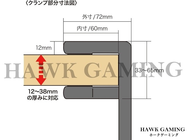 対応デスク: 天板の厚みが最大約38mmまでのデスク