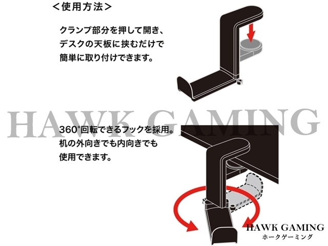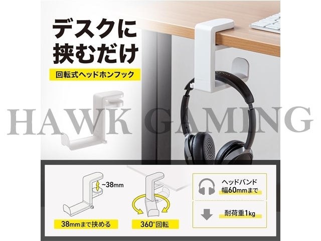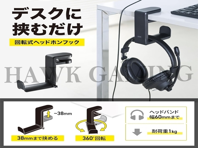 デスクに挟むだけで簡単取り付けできるヘッドホンフック
