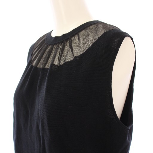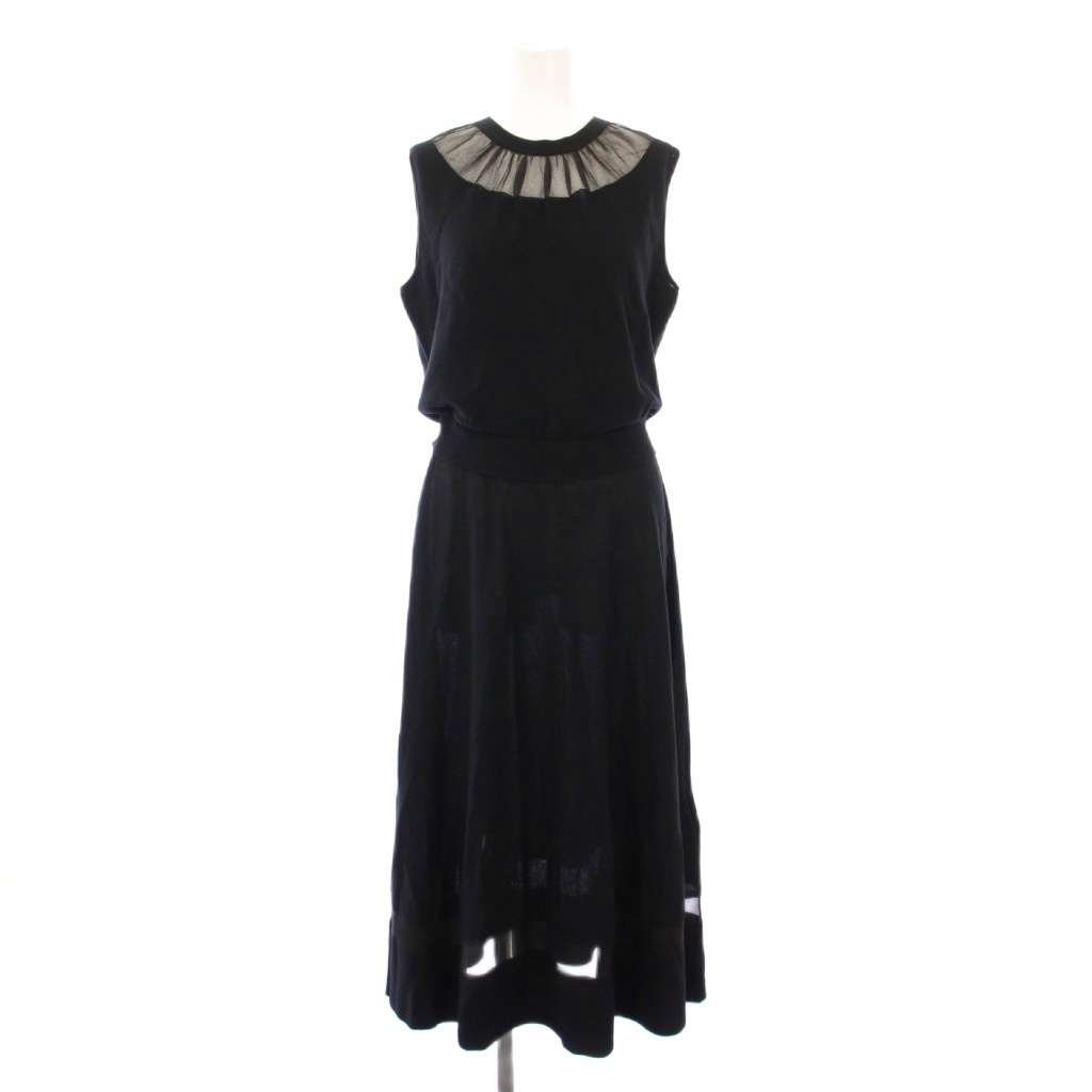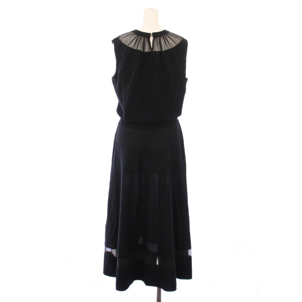 未使用品 アナイ ANAYI 24SS フレアワンピース ミモレ ロング ノースリーブ クルーネック 無地 ペチコート付き 36 黒 タグ付き
