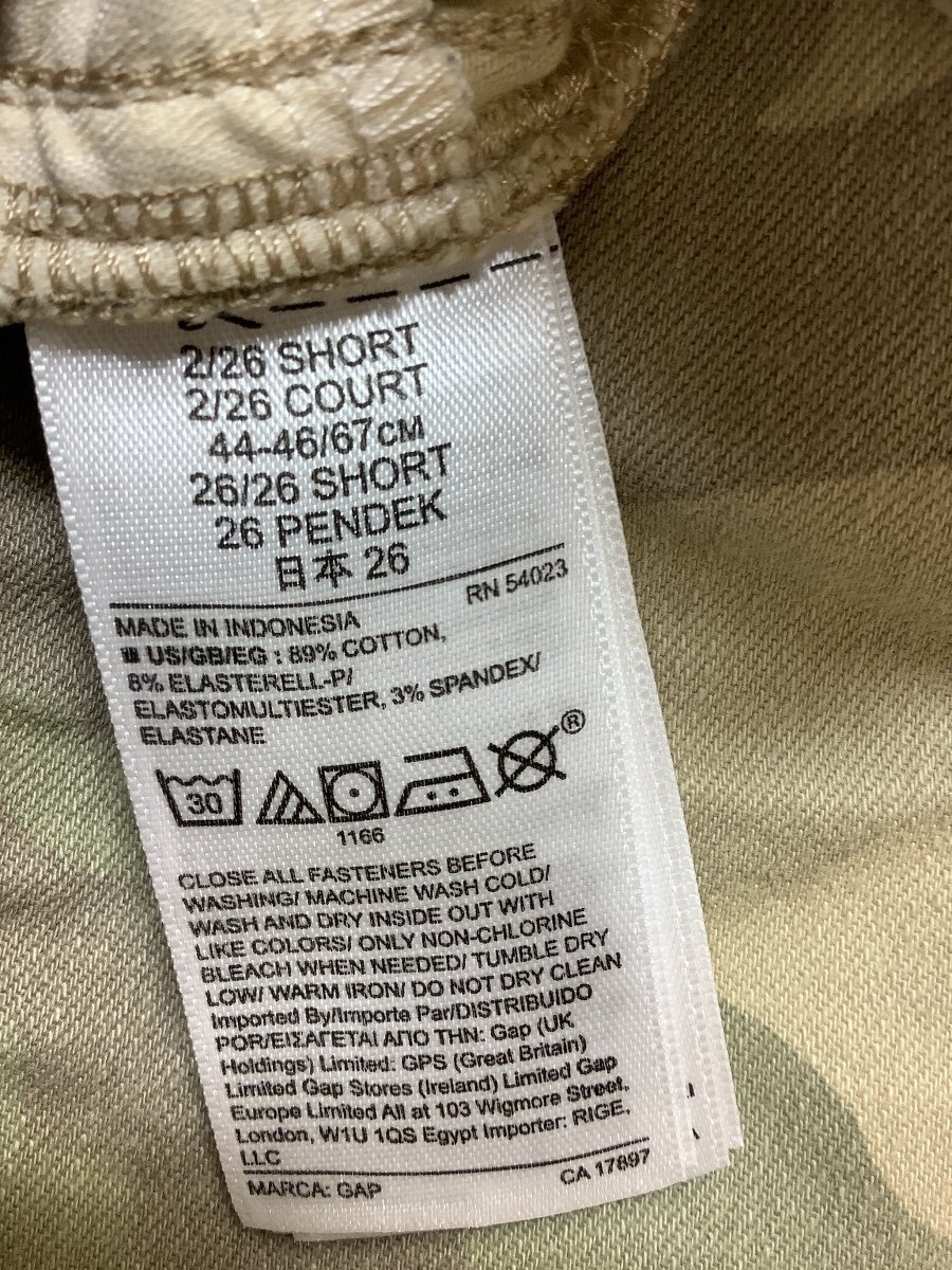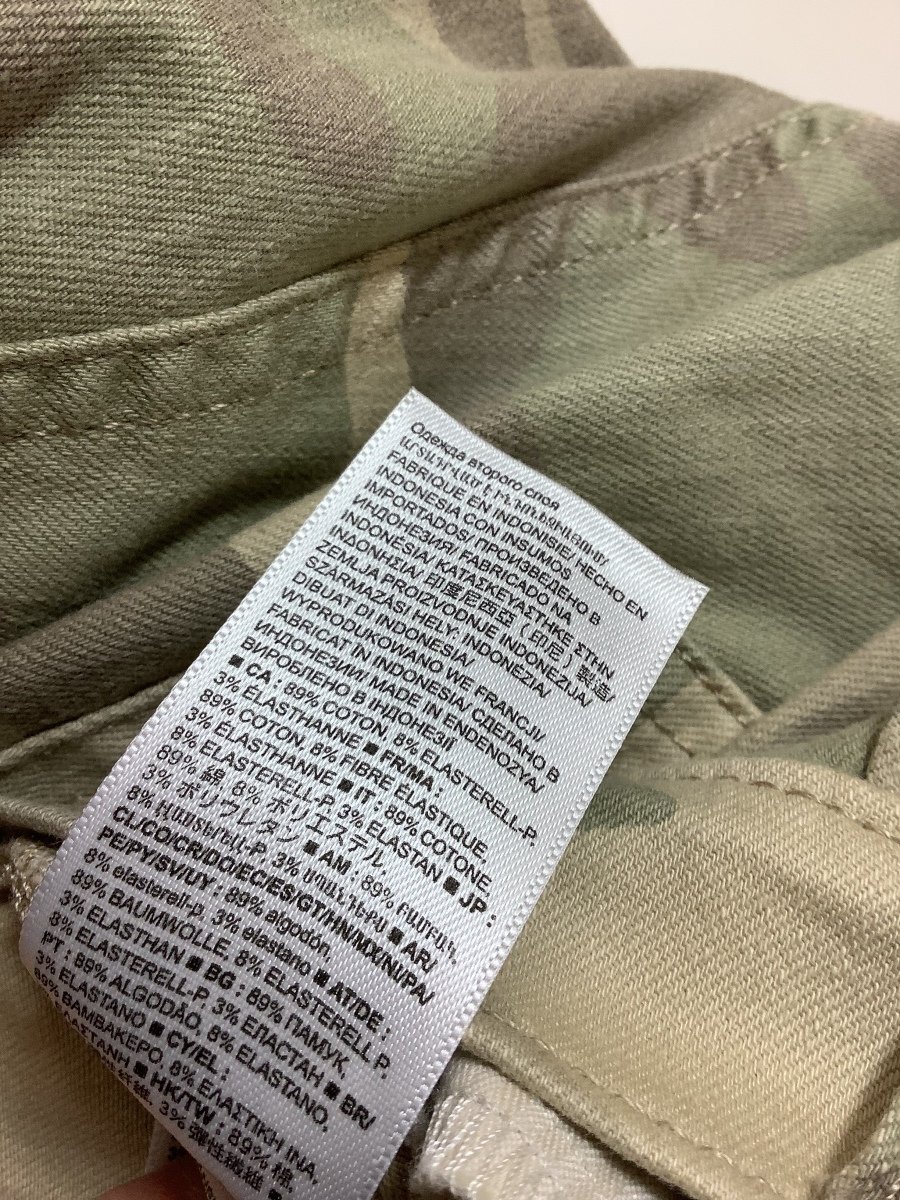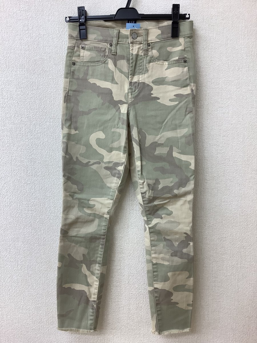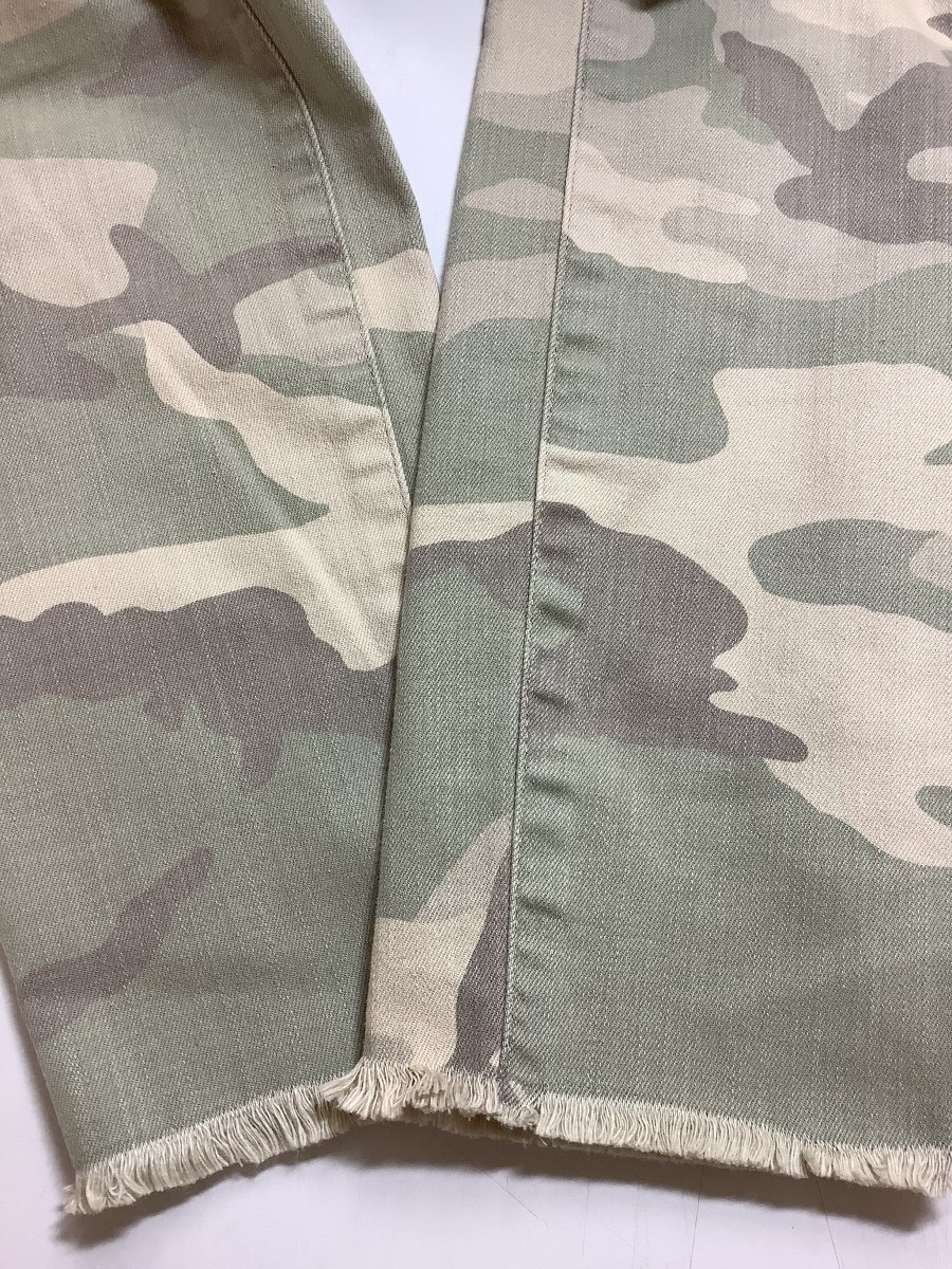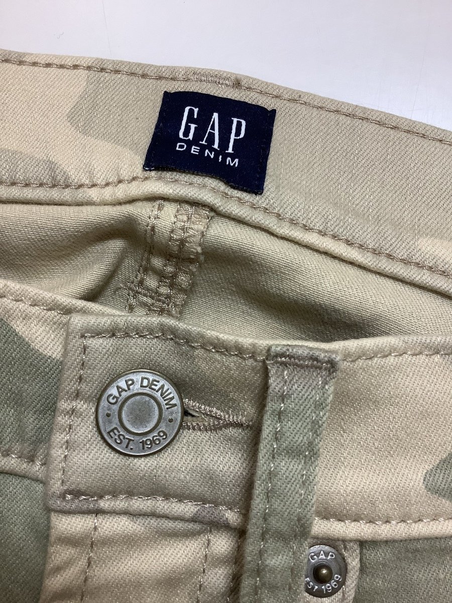 | 管理番号:99^135146 ギャップDENIM カモフラ柄のパンツ 薄めベージュにグリーン系 表示サイズ:26 実寸(参考)