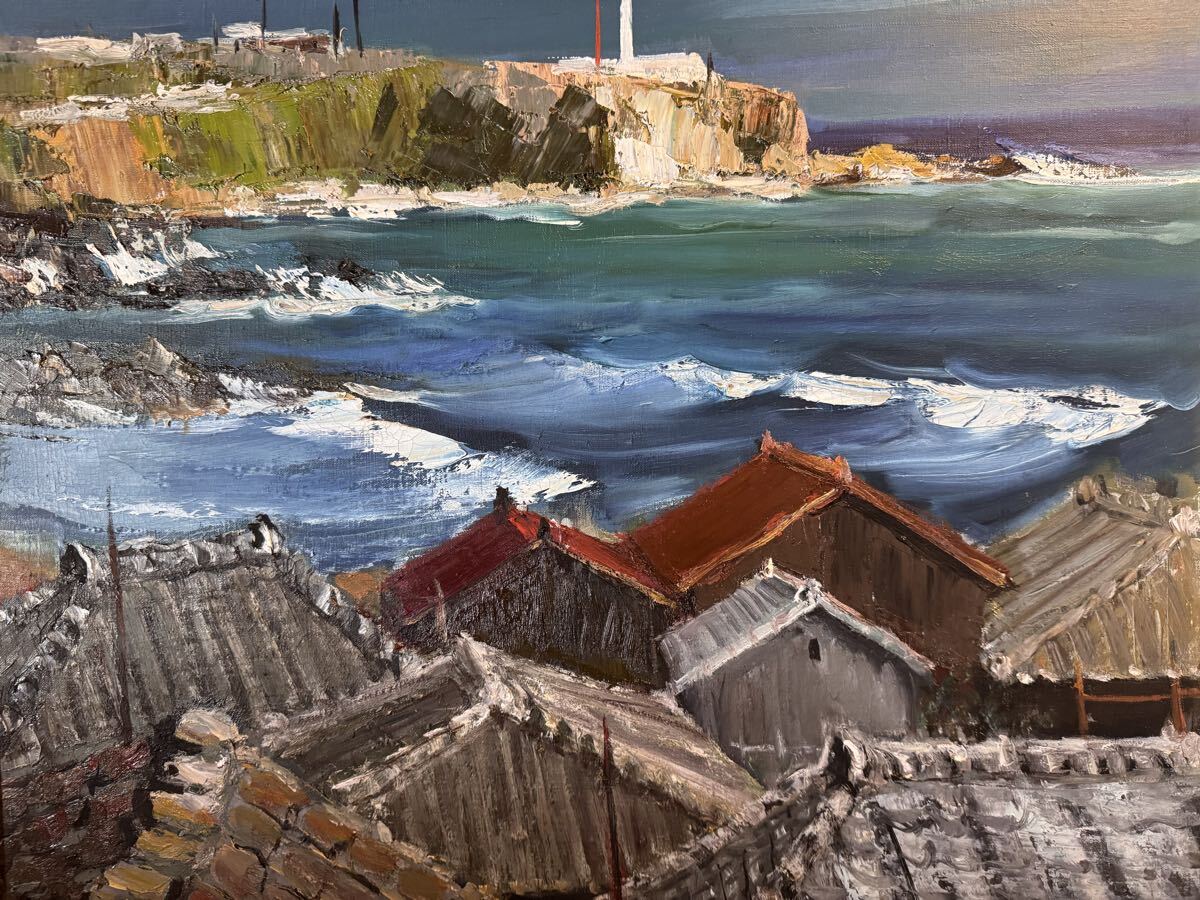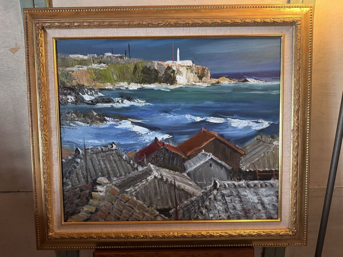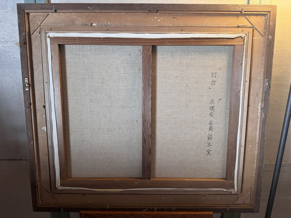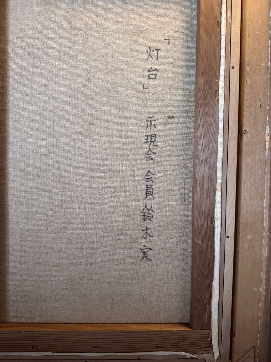 真作 鈴木実 『 灯台 』 油彩 F20号 油絵 額縁 インテリア 風景画 額装 示現会 洋画