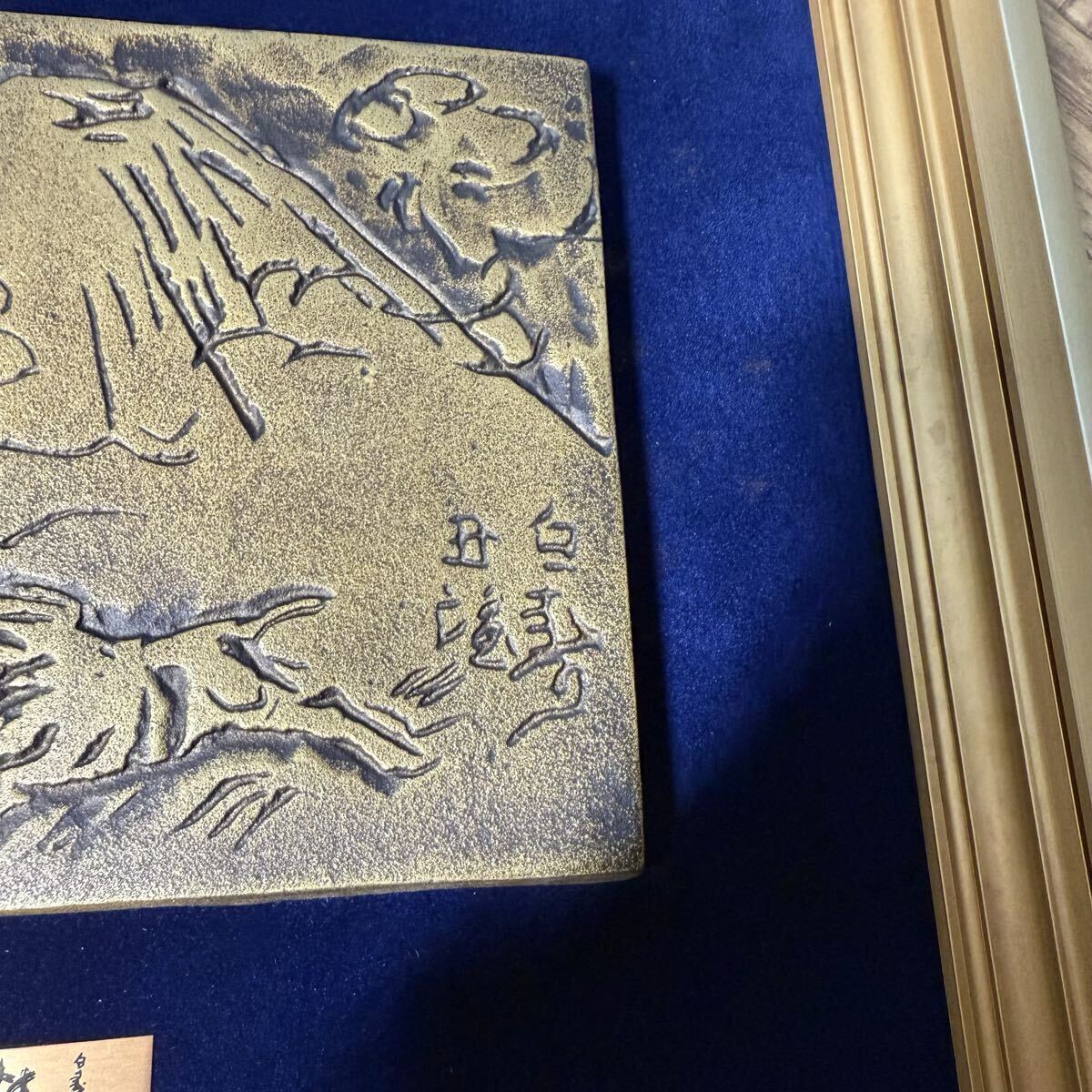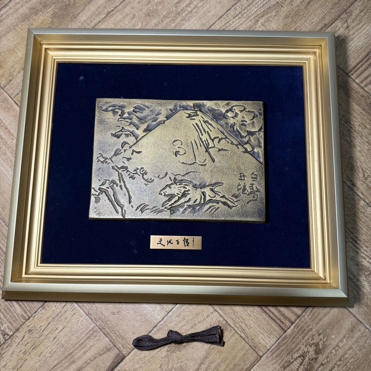 ◎新品◎北村西望◎天地有情◎ブロンズレリーフ◎額サイズ 39×33×4◎文化勲章◎猪子富士◎壁飾り◎富士山に猪図◎KN(331) | ||