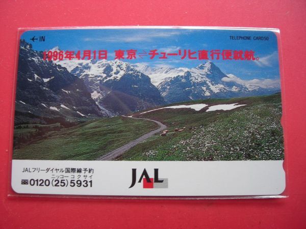 日本航空 JAL 東京ーチューリヒ直行便就航 110-157997 未使用テレカ