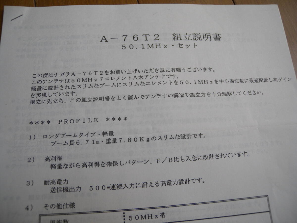 NAGARA ナガラ A-76T2 50mhz 組立説明書 中古 送料430円よりを出品いたします