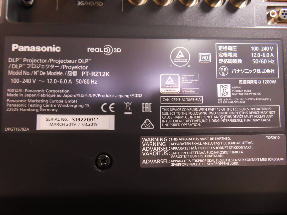 見学可能 3801時間使用 Panasonic パナソニック PT-RZ12K 3チップレーザー光源プロジェクター ブラック レンズ無し 管理7k0903B-K1